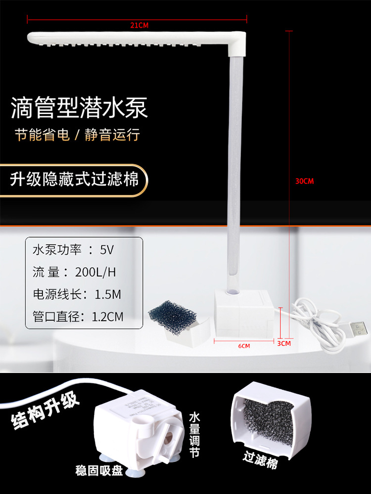 Водяной насос + прозрачная трубка + двухрядная дождевая трубка (включая фильтрующий материал); Водяной насос + однорядная дождевая труба (включая фильтрующий хлопок); Водяной насос + отводной трубопровод (включая фильтрующий хлопок); Двухрядная душевая лейка + прозрачная прямая труба (без водяного насоса); Прозрачная отводная труба (без водяного насоса)