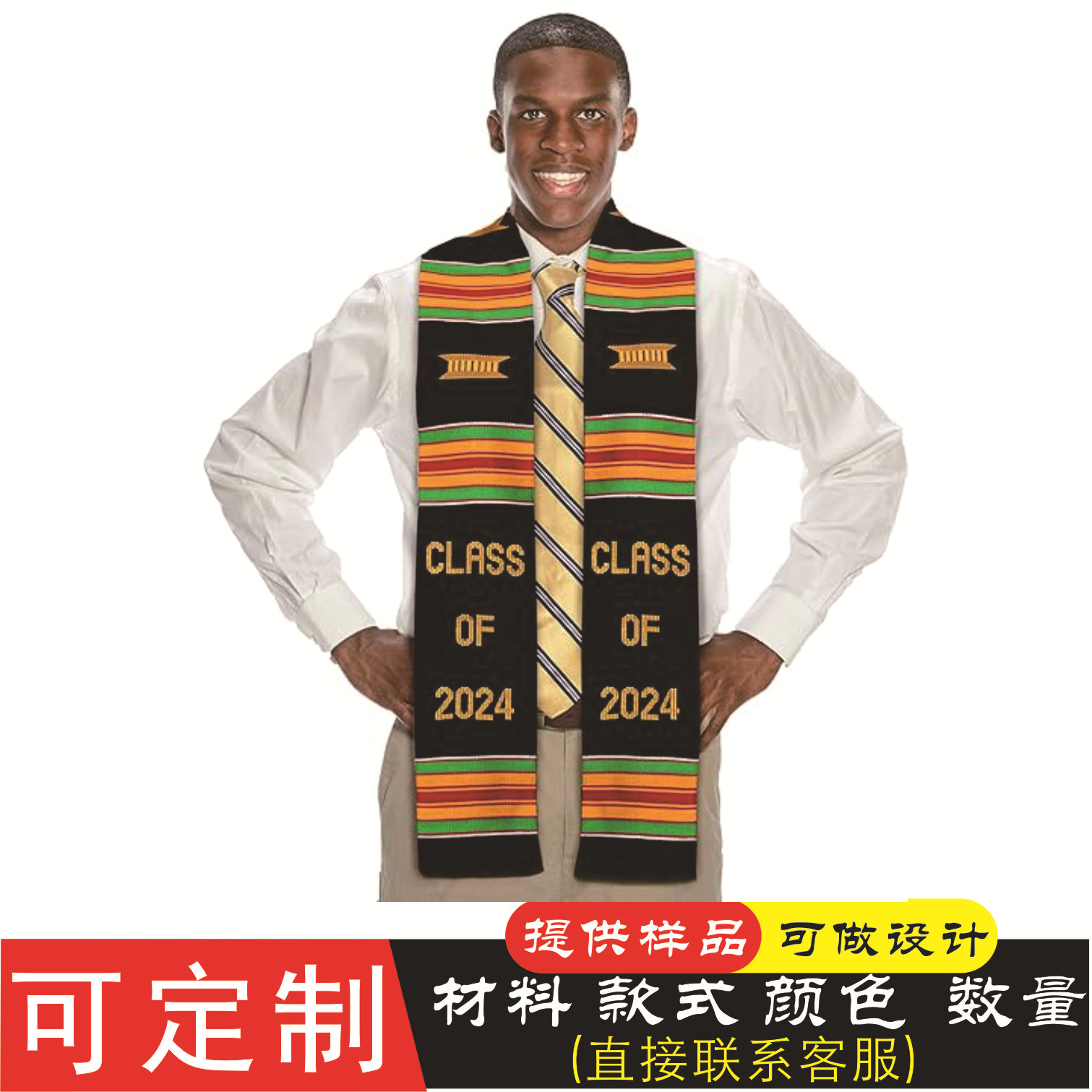 Кент Бу южноафриканский черный цифровой отпечаток с бахромой атласный выпускной шарф с почетным этикетом для взрослых