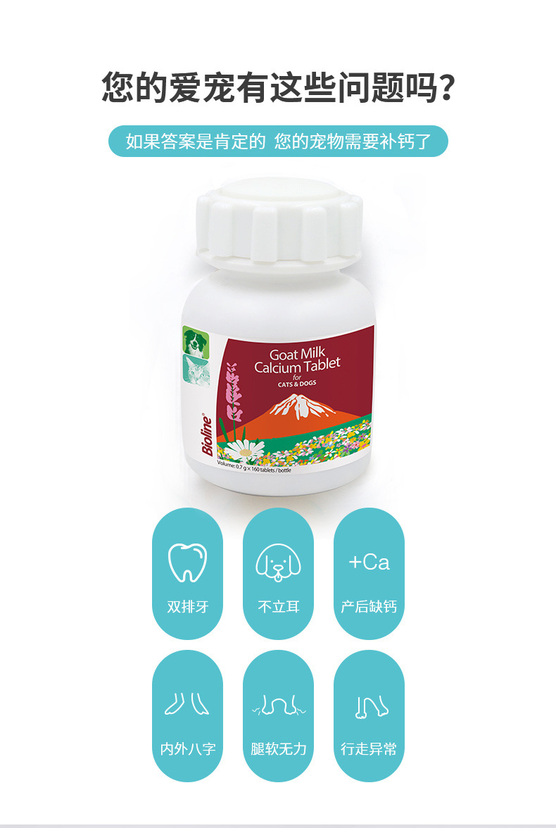 Таблетки кальция из козьего молока Bioline оптом, универсальные таблетки кальция из козьего молока для кошек и собак, прямые продажи от производителя, прямые трансграничные поставки.