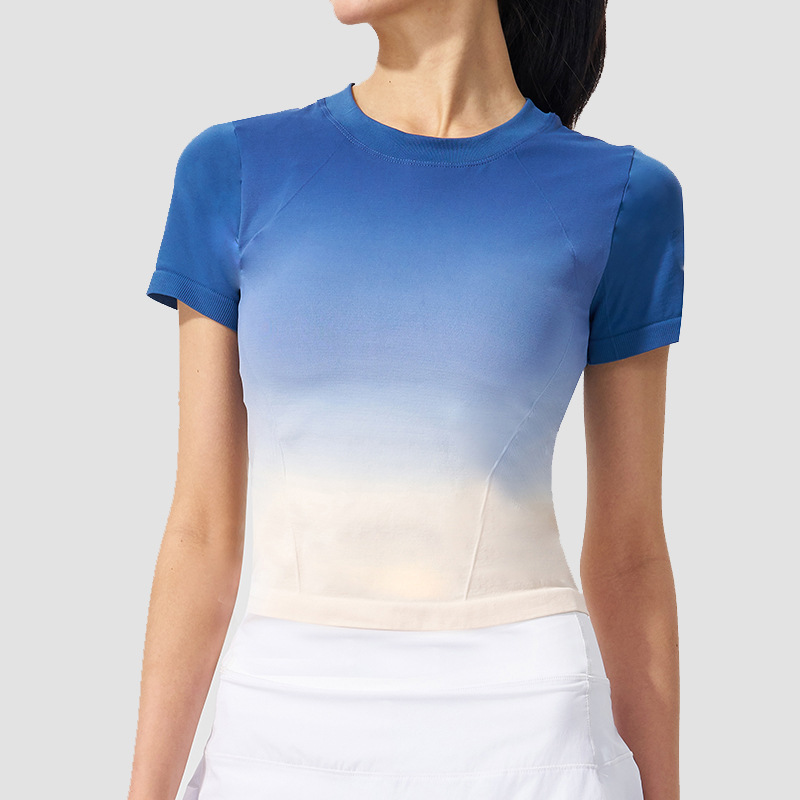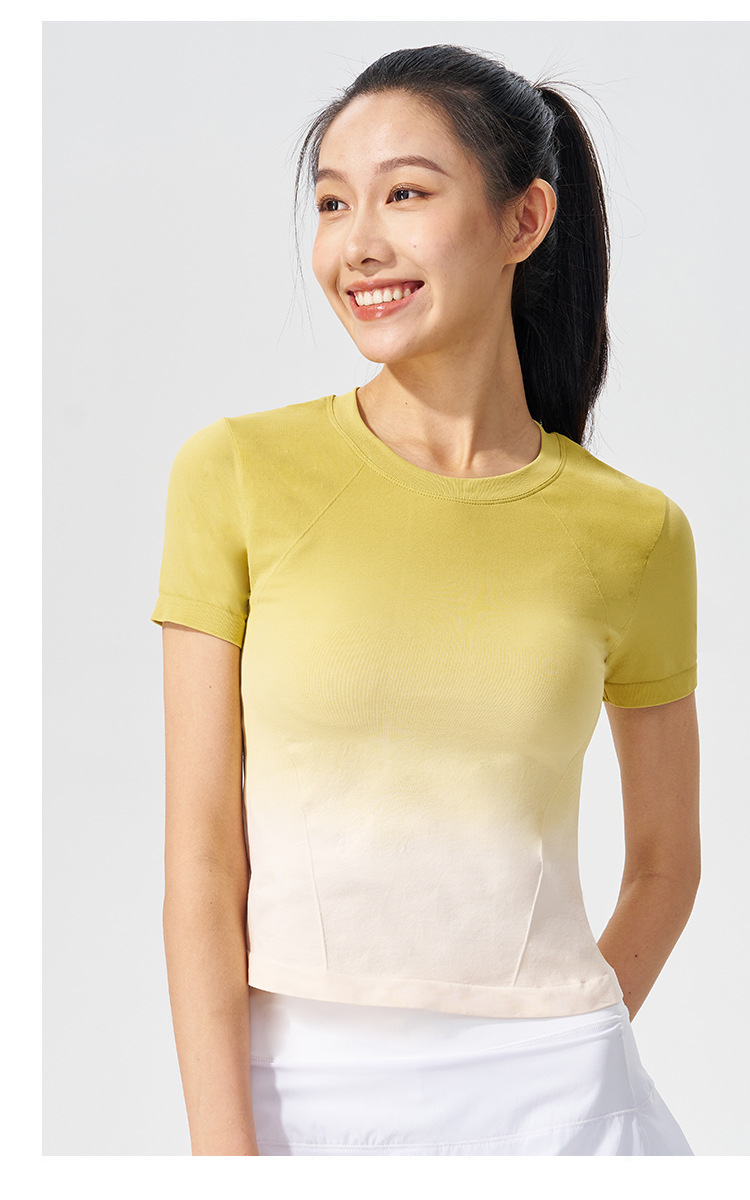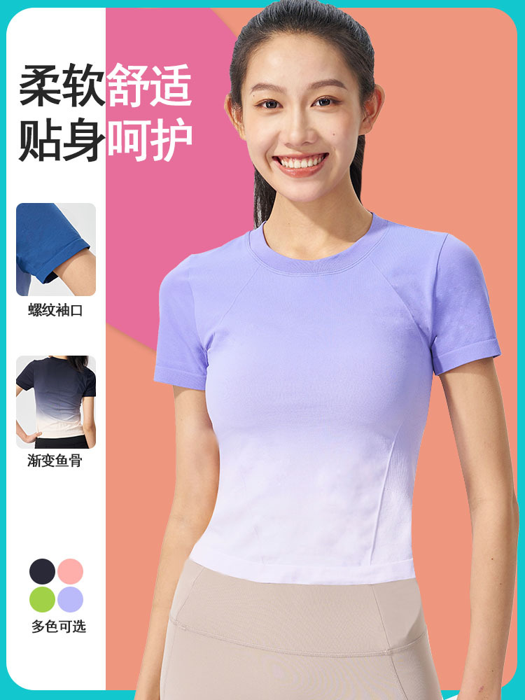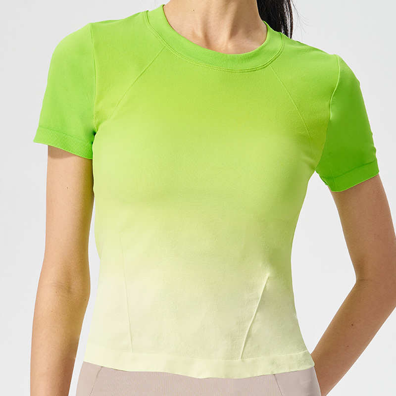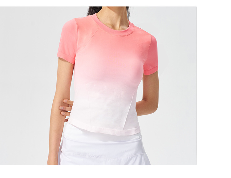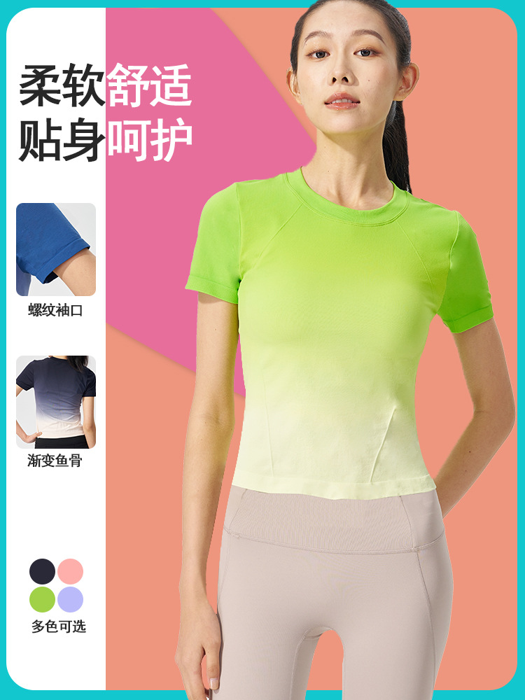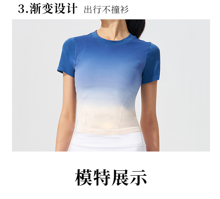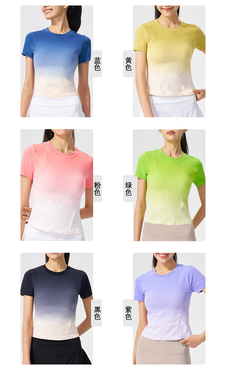 Новая летняя спортивная футболка LULU 2026 года с градиентным эффектом, быстросохнущая, для бега и фитнеса, с коротким рукавом, облегающая, для йоги, для женщин