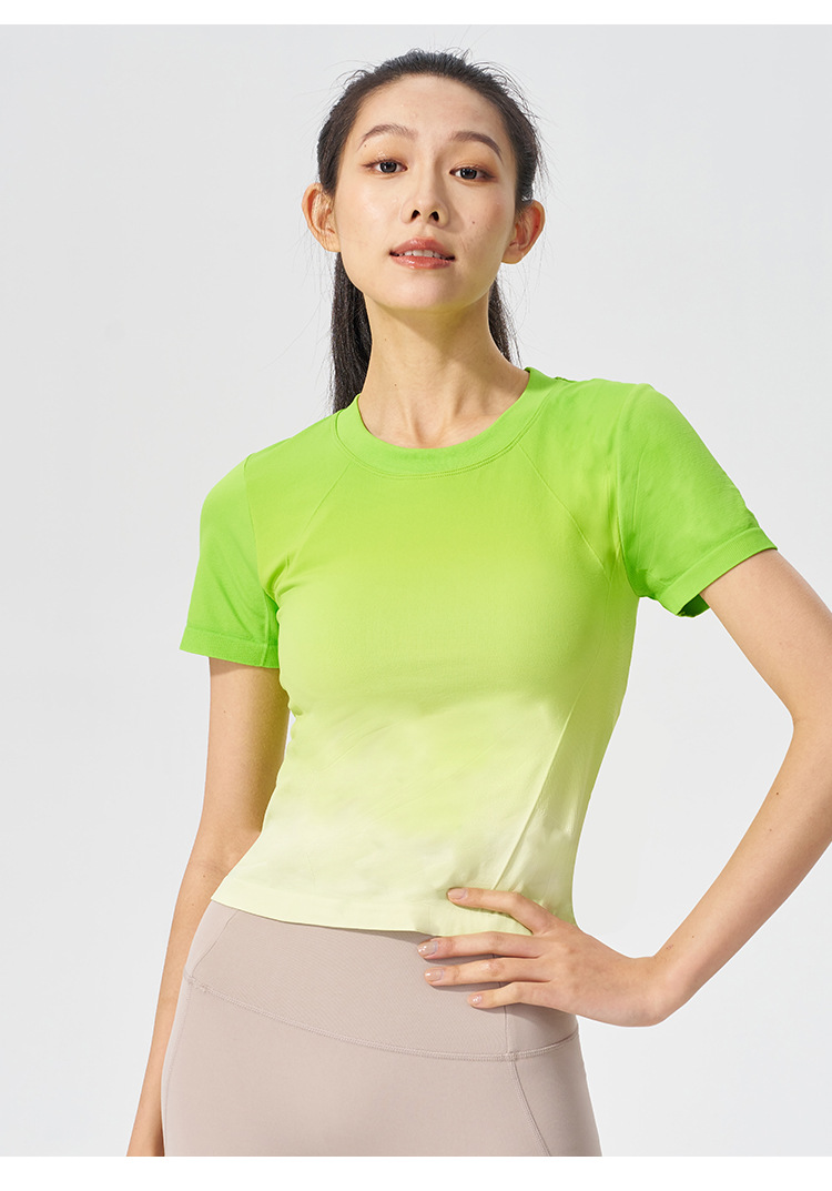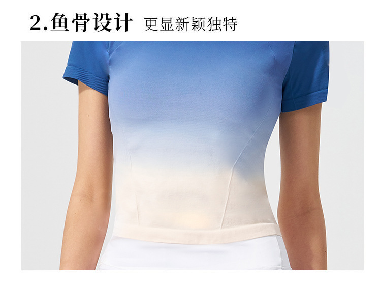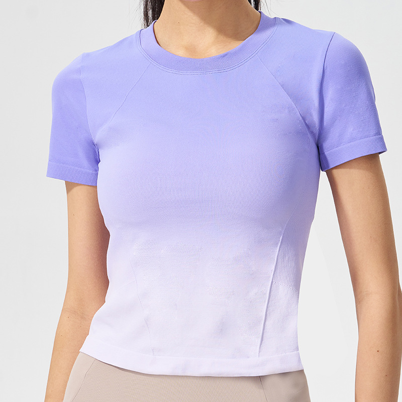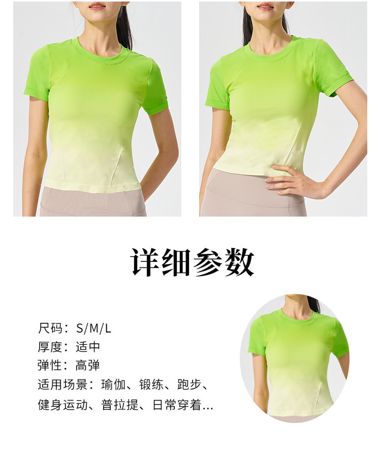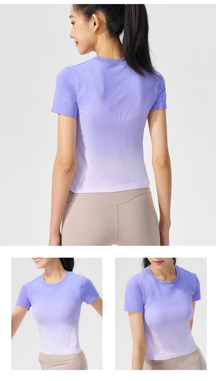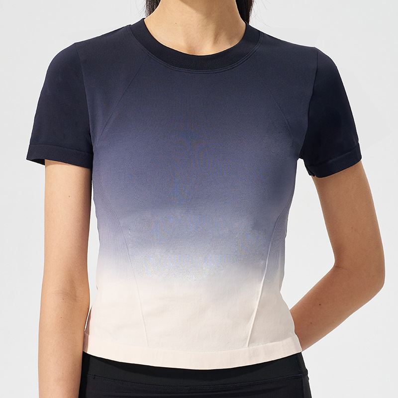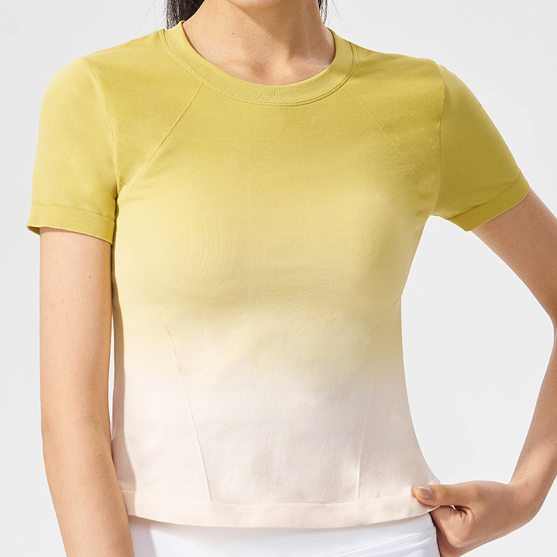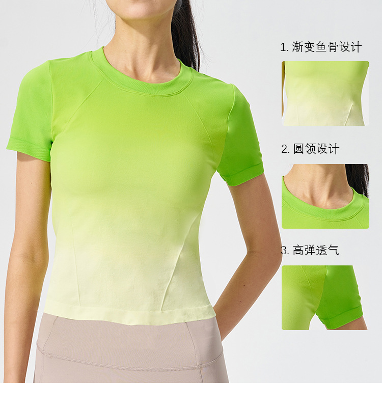 Новая летняя спортивная футболка LULU 2026 года с градиентным эффектом, быстросохнущая, для бега и фитнеса, с коротким рукавом, облегающая, для йоги, для женщин