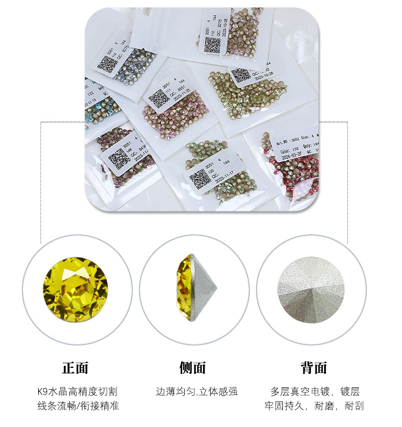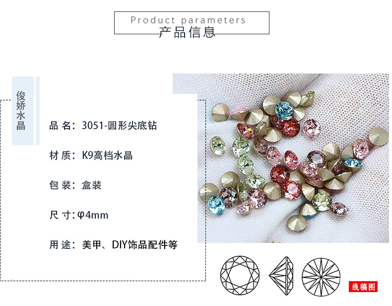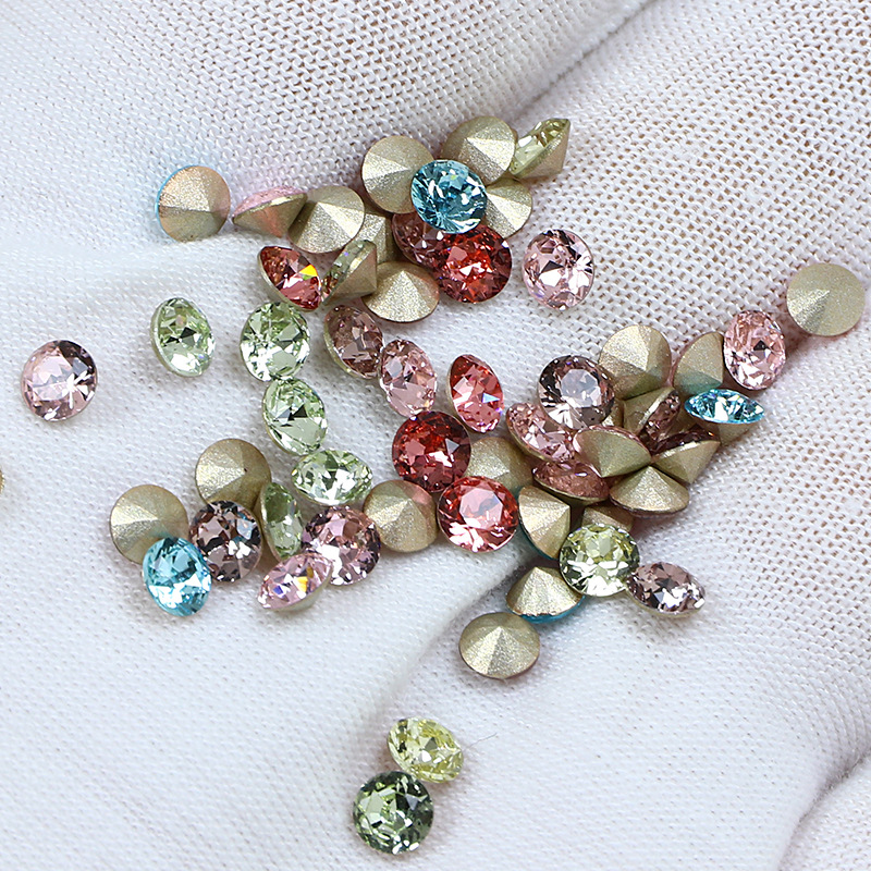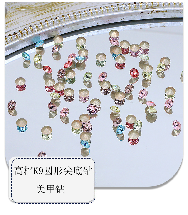 Dongzhou 4 мм цветной маленький круглый наконечник высокого качества K9 остроконечный стеклянный бриллиант ногтей сверл сверл шов DIY ювелирные аксессуары оптом