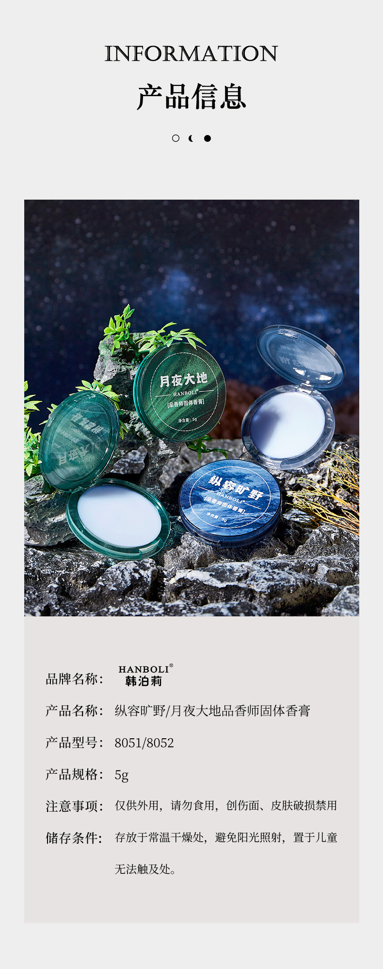 HANBOLI Moon Night Dadi Парфюмерный твердый бальзам, HANBOLI Конвергенция Парфюмер в дикой природе Твердый бальзам