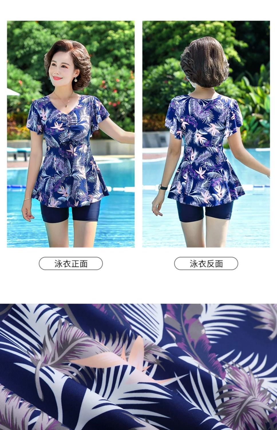 Купальник для мамы для женщин среднего и пожилого возраста, консервативный, закрывающий живот, для похудения, разделенный стиль большого размера, новый купальник из горячих источников 2025 года.