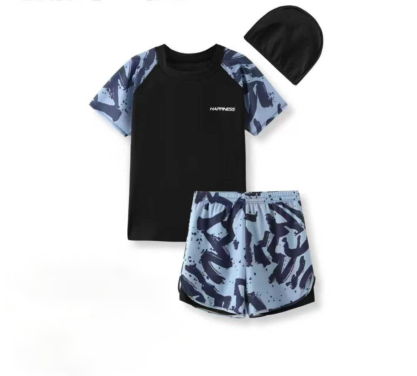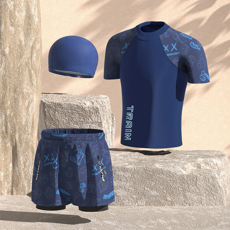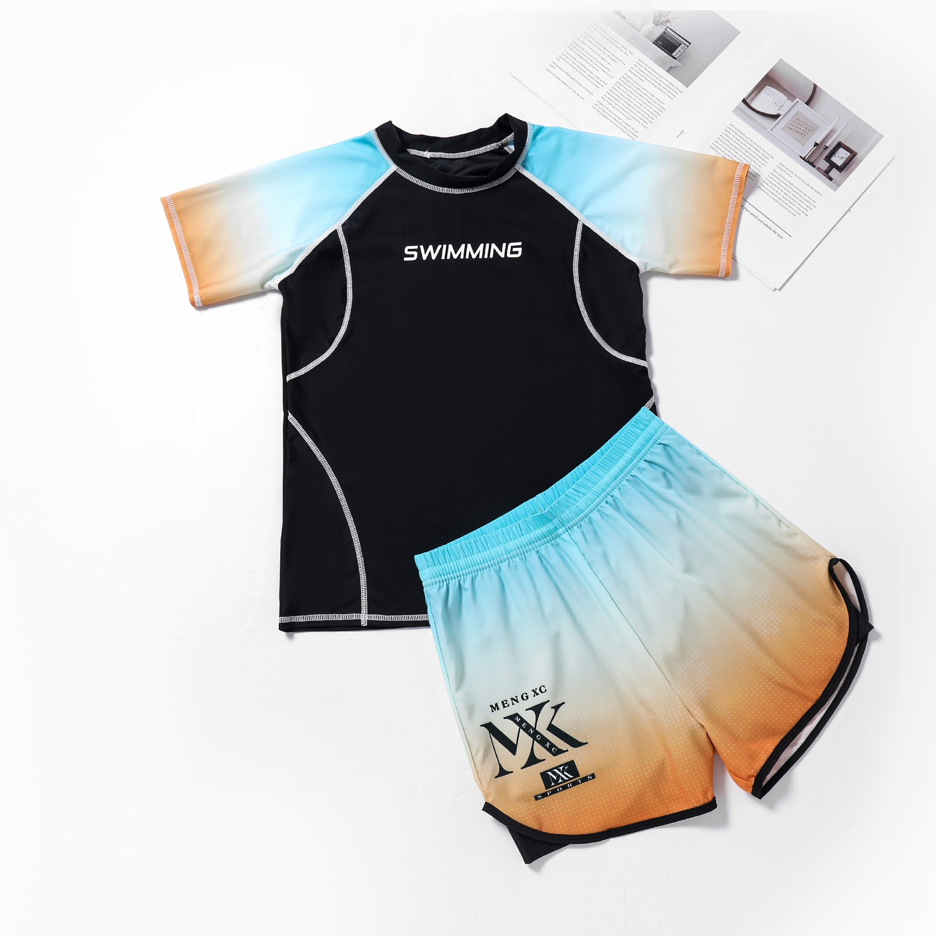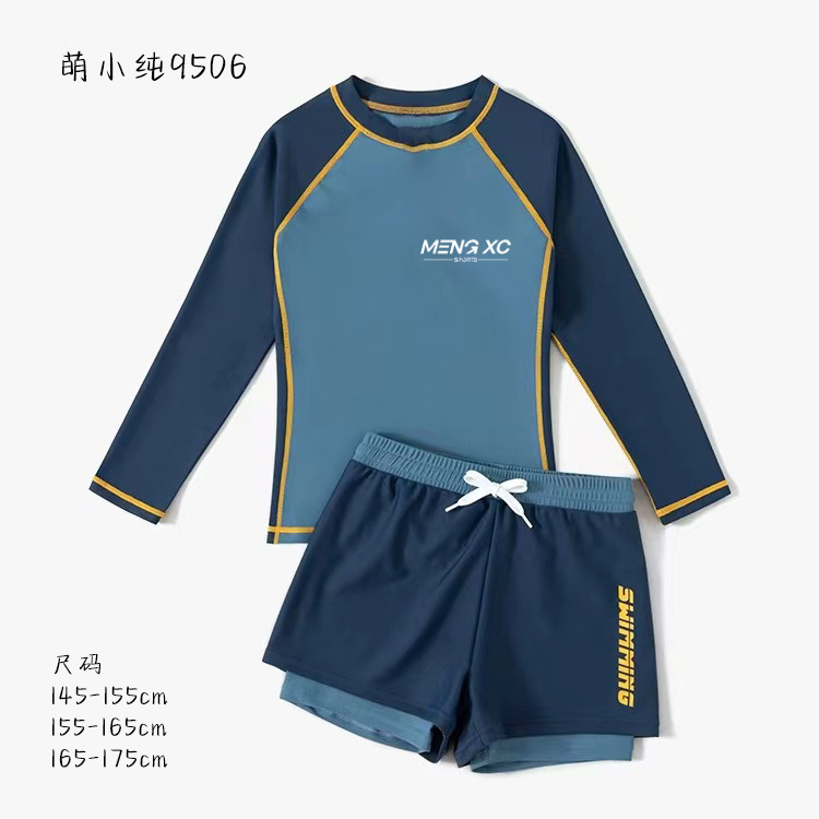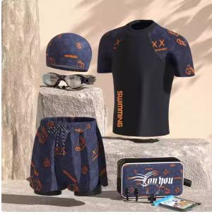 Костюмы для мальчиков, новые модные боксеры большого размера, искусственные двухсекционные спортивные купальники для мальчиков и детей с защитой от сборки