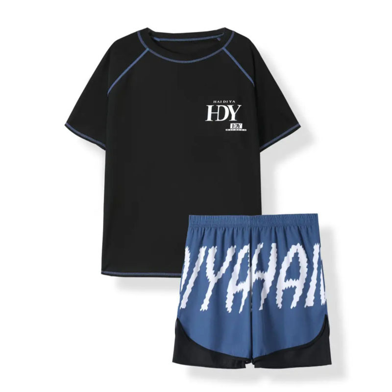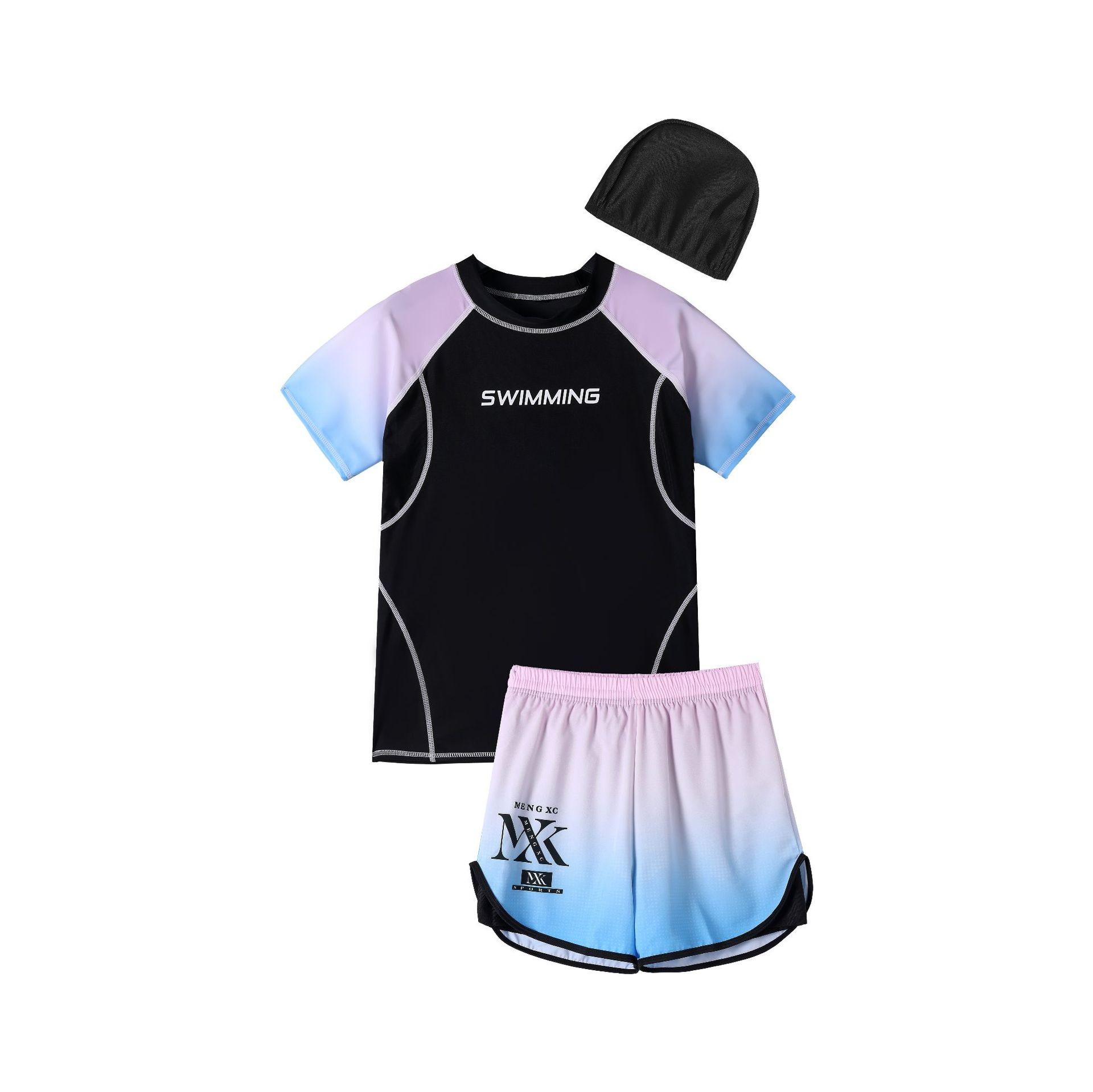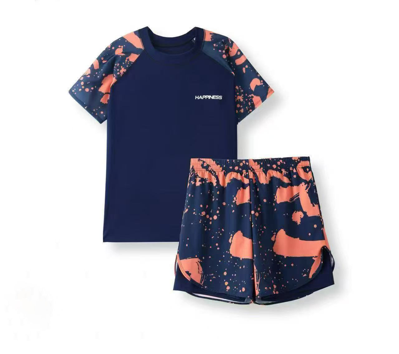 Костюмы для мальчиков, новые модные боксеры большого размера, искусственные двухсекционные спортивные купальники для мальчиков и детей с защитой от сборки