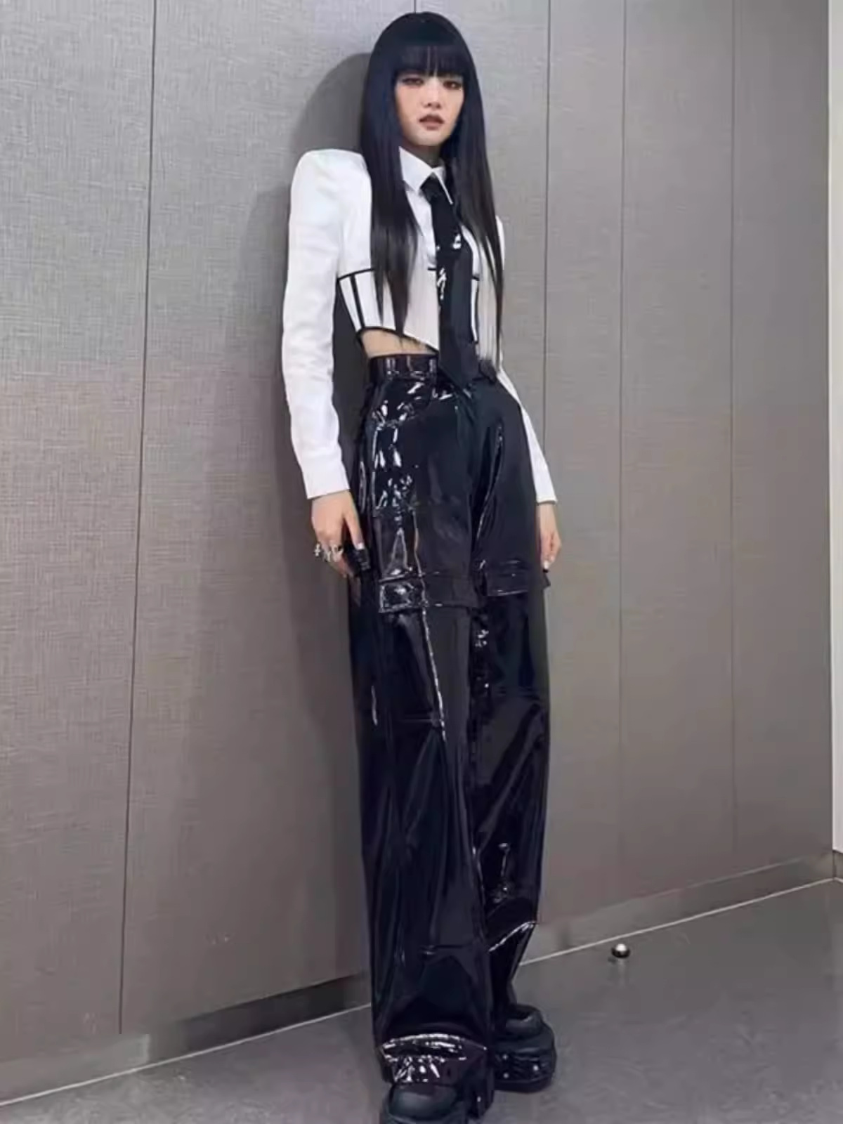 Костюм для выступлений в стиле джаз и хип-хоп для корейской девчачьей группы Gidle, кожаные брюки, сексуальный стиль для девушек.