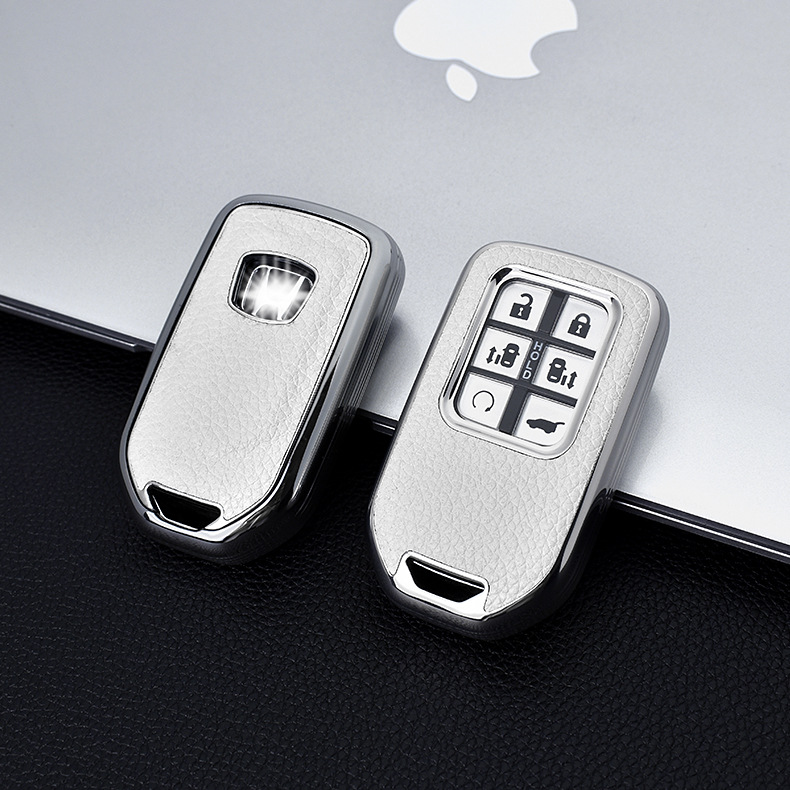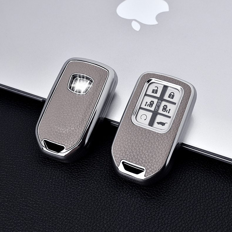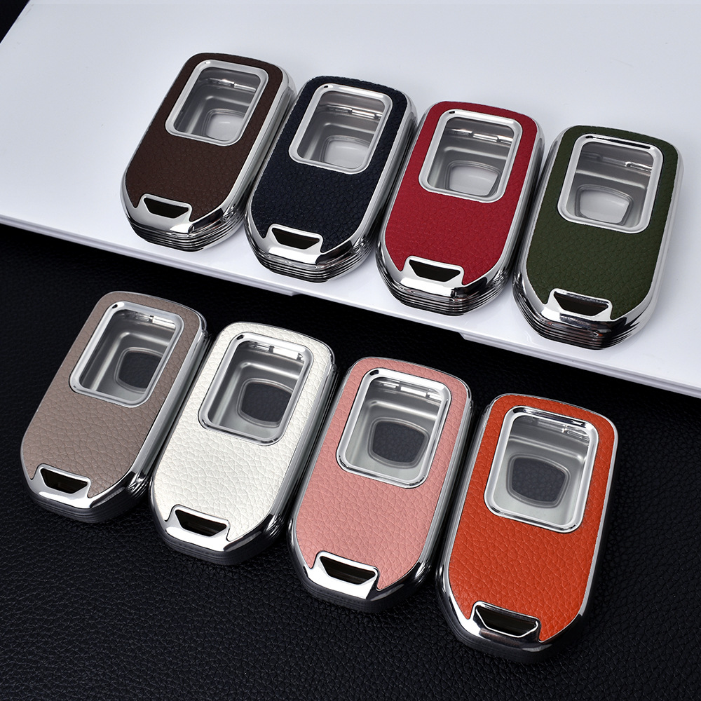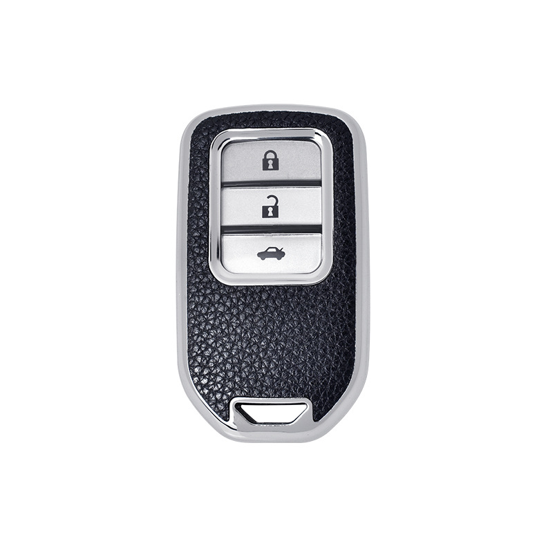 Чехол для ключей Honda, текстура кожи с гальваническим покрытием, чехол для ключей Vezel/Civic/Accord/Glory с серебристой кромкой из ТПУ