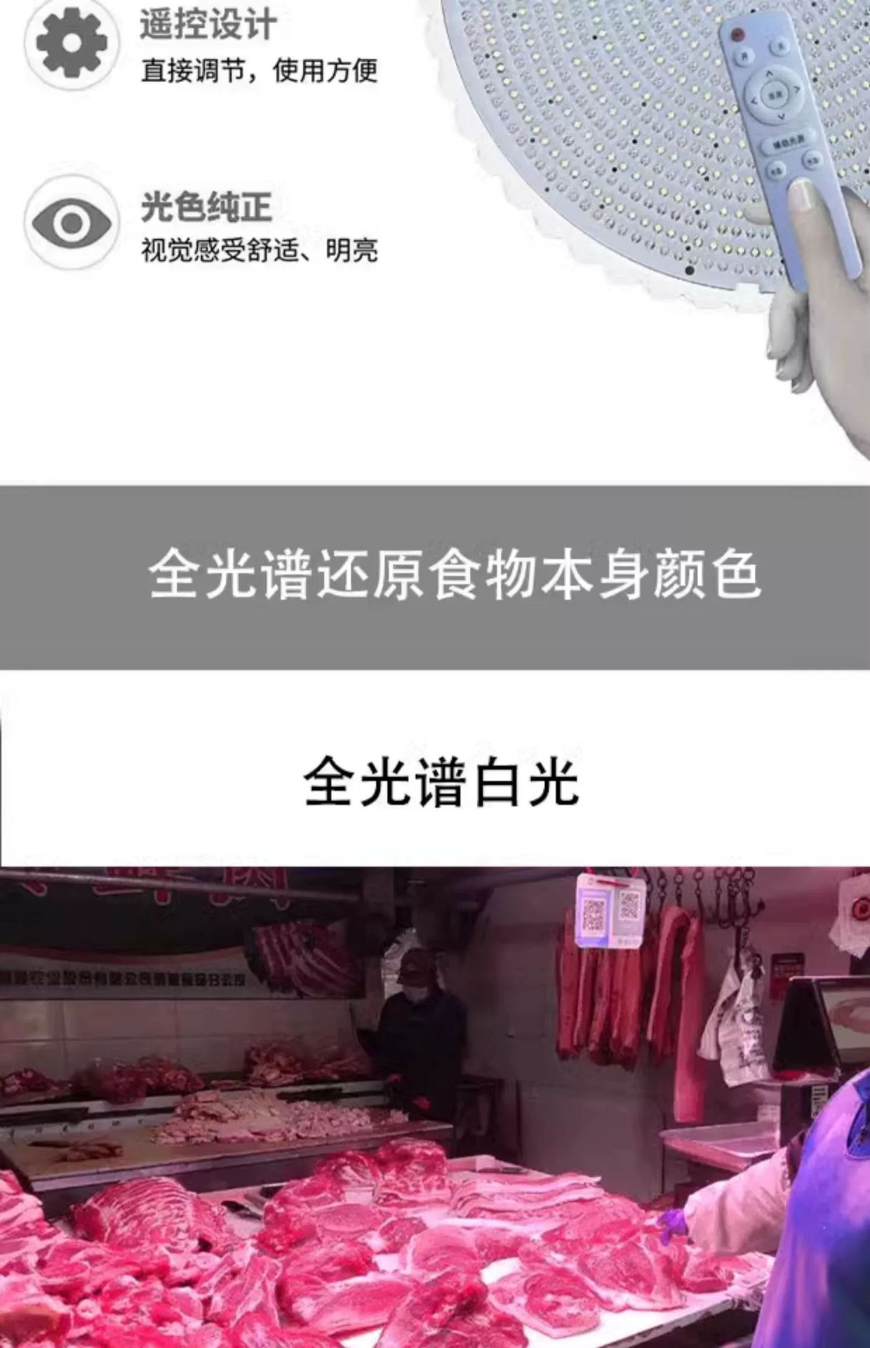 Новый национальный стандарт освещения для свежих продуктов: светодиодный светильник полного спектра для продажи мяса, свинины, охлажденного свежего мяса, готовых блюд, тушеного мяса, специально для свежего мяса на рынке.