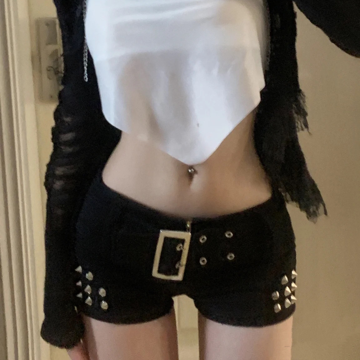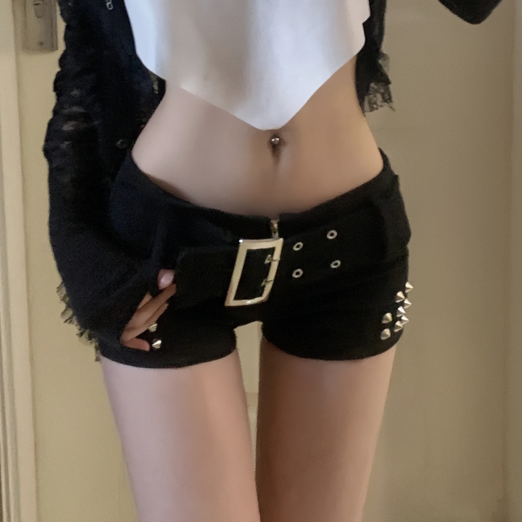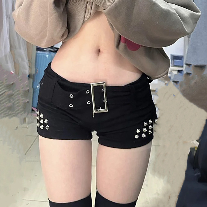 Интернет-знаменитости, сексуальные сексуальные супер шорты с низкой талией y2k, женские эластичные узкие шорты с заклепками для тяжелой промышленности, весенние и летние джинсовые шорты