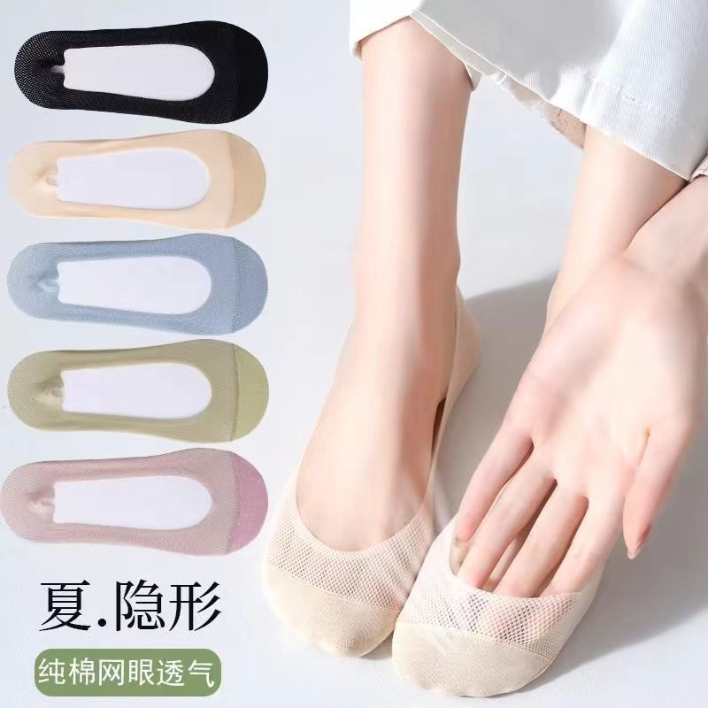 Сетчатые ледяные шелковые женские лодочные носки весной и летом тонкие стелсы не падают, а сплошные хлопчатобумажные носки короткие носки нескользящие и дышащие женские носки