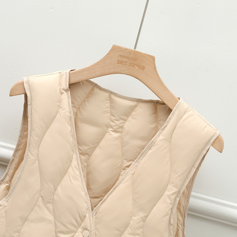 Женский жилет из белого утиного пуха на осень и зиму, с V-образным вырезом, универсальный, легкий, теплый, с короткими рукавами, модный.