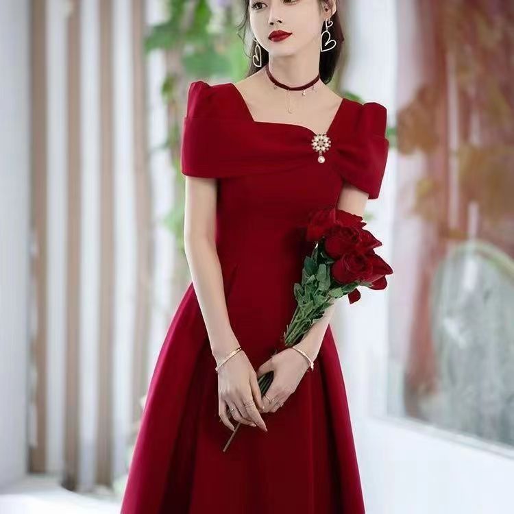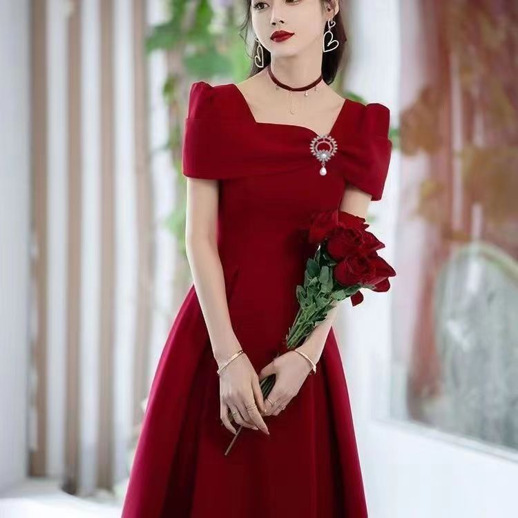 2024 Летний свадебный тост свадебный свадебный костюм свадебное красное платье французское вечернее платье высокого класса обычно можно носить