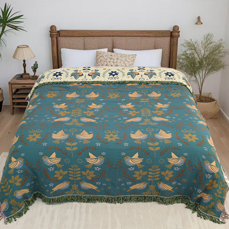 Одеяло с кисточками зеленого цветка и птицы [сзади бежевое]; Зеленое одеяло с кисточками «Ромашка»; Одеяло с кисточками из календулы; Одеяло с розовой кисточкой «Ромашка»; Одеяло с желтыми цветочными кисточками; Зеленое одеяло с кисточками «Колибри»; Одеяло с бежевым элементом стрелки