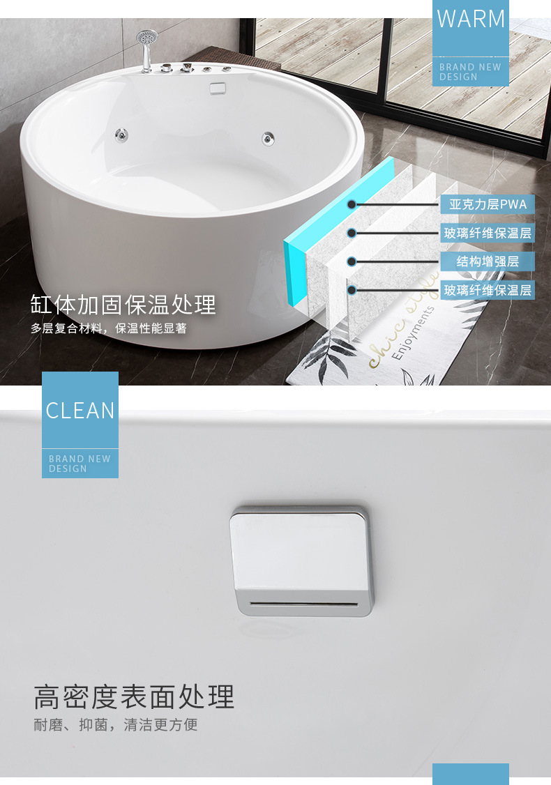 Большая круглая ванна для дома, виллы, массажный цилиндр с двойной постоянной температурой, известная ванна для отеля, акриловая ванна