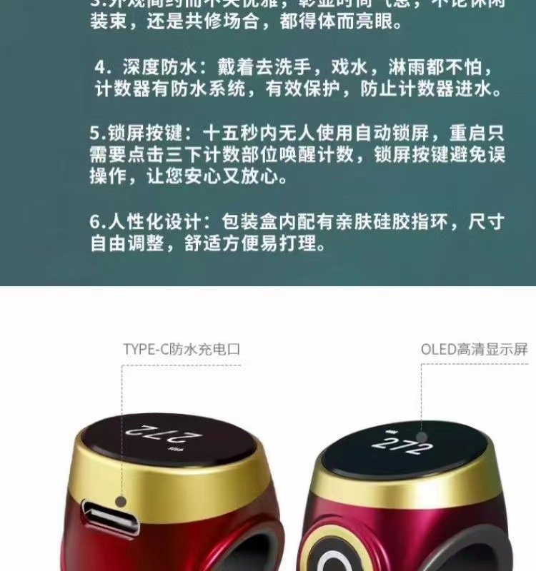 Новый водонепроницаемый счетчик сенсорный светящийся ручная зарядка типа кольца