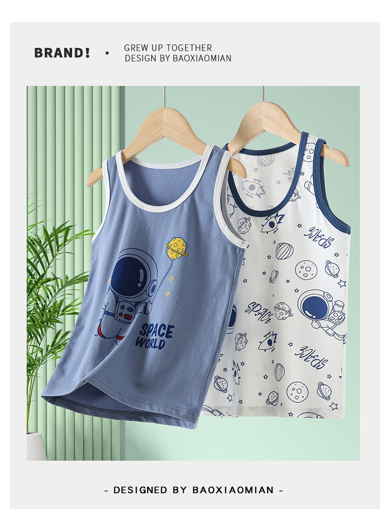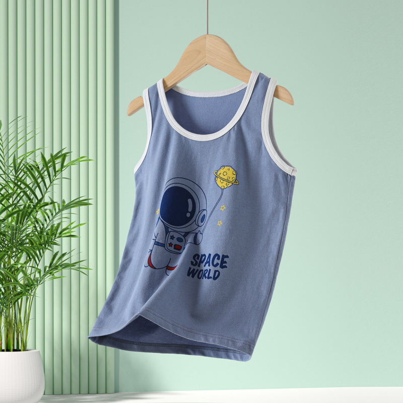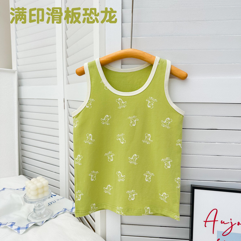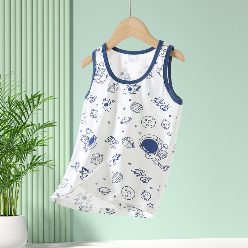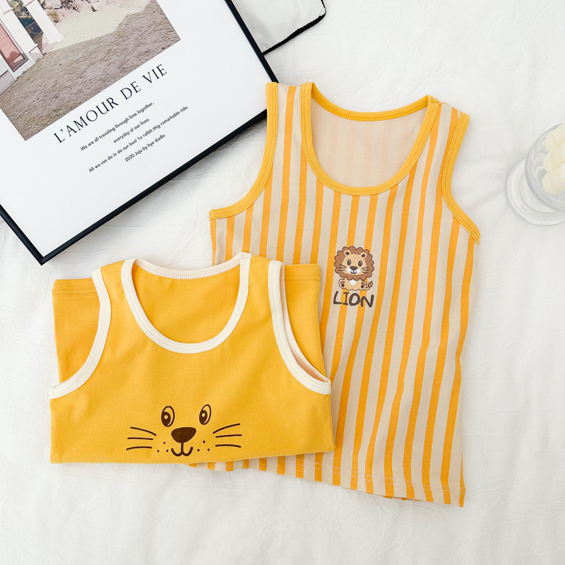 Летний новый детский жилет лайкра хлопок для мальчиков и девочек мультфильм принт простой безрукавный топ нижний жилет