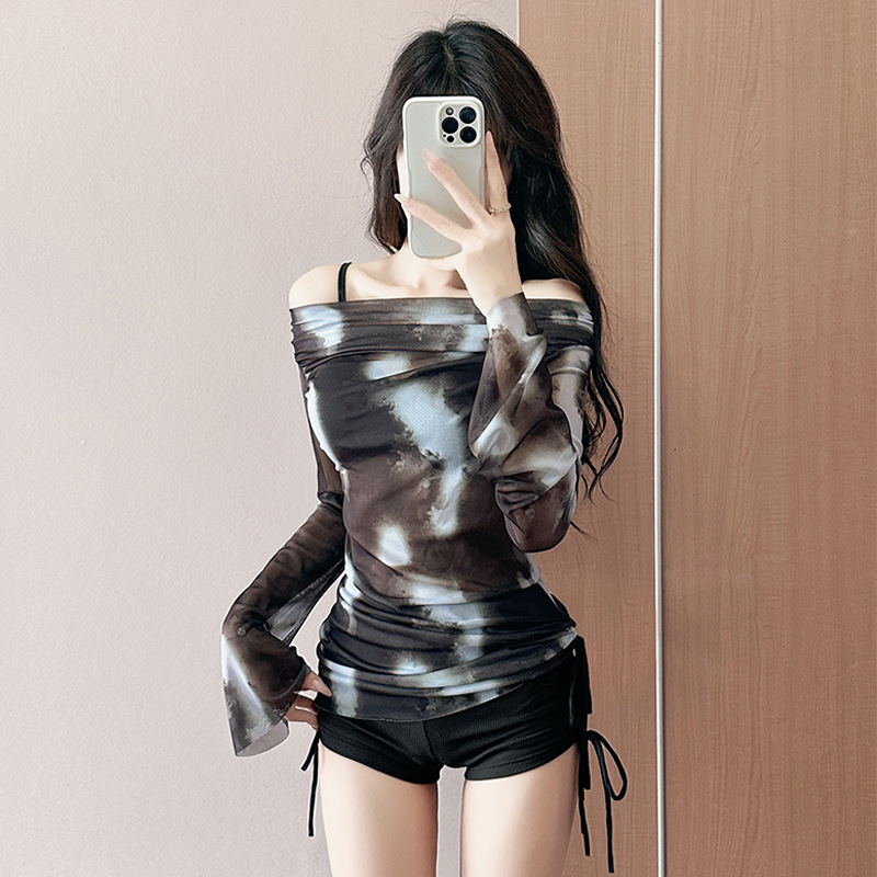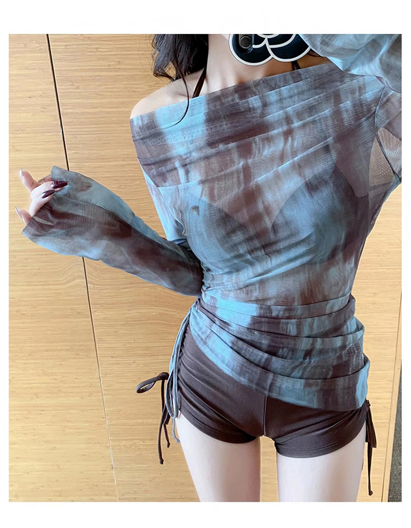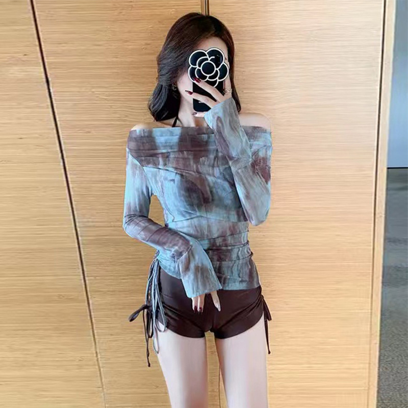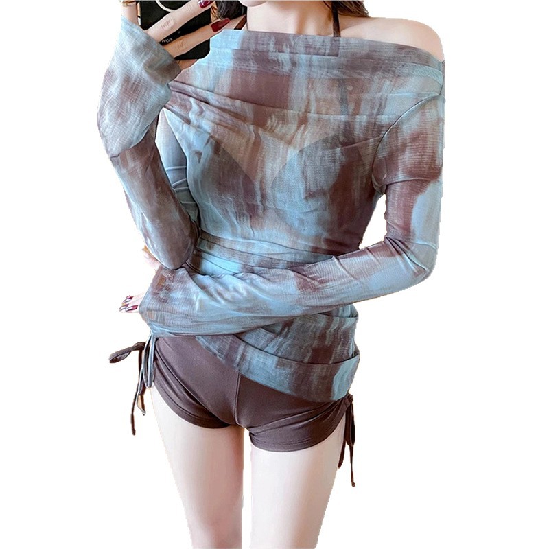 Купальник женский сплит три комплекта с длинными рукавами модная блузка с завязками сексуальный бикини консервативный тонкий тонкий купальник