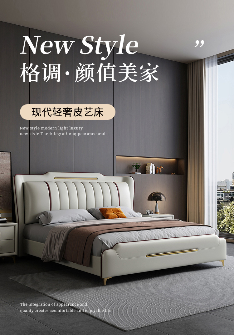 Простая кожаная кровать в итальянском стиле 1 м 8 кровать в главной спальне простой двойной 1,5 м легкий и роскошный высококачественный атмосферный современный технологический тканый кровать