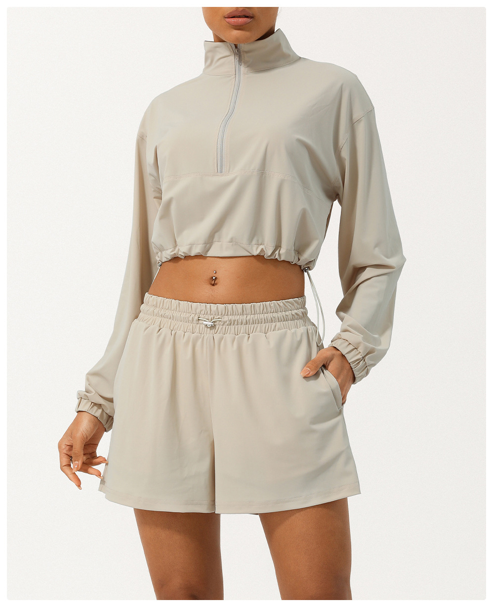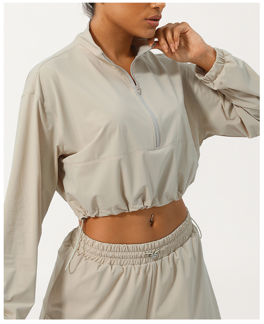 Летняя куртка для йоги с защитой от солнца, высоким воротником и полузастежкой-молнией, защита от УФ-излучения, с капюшоном на шнурке.