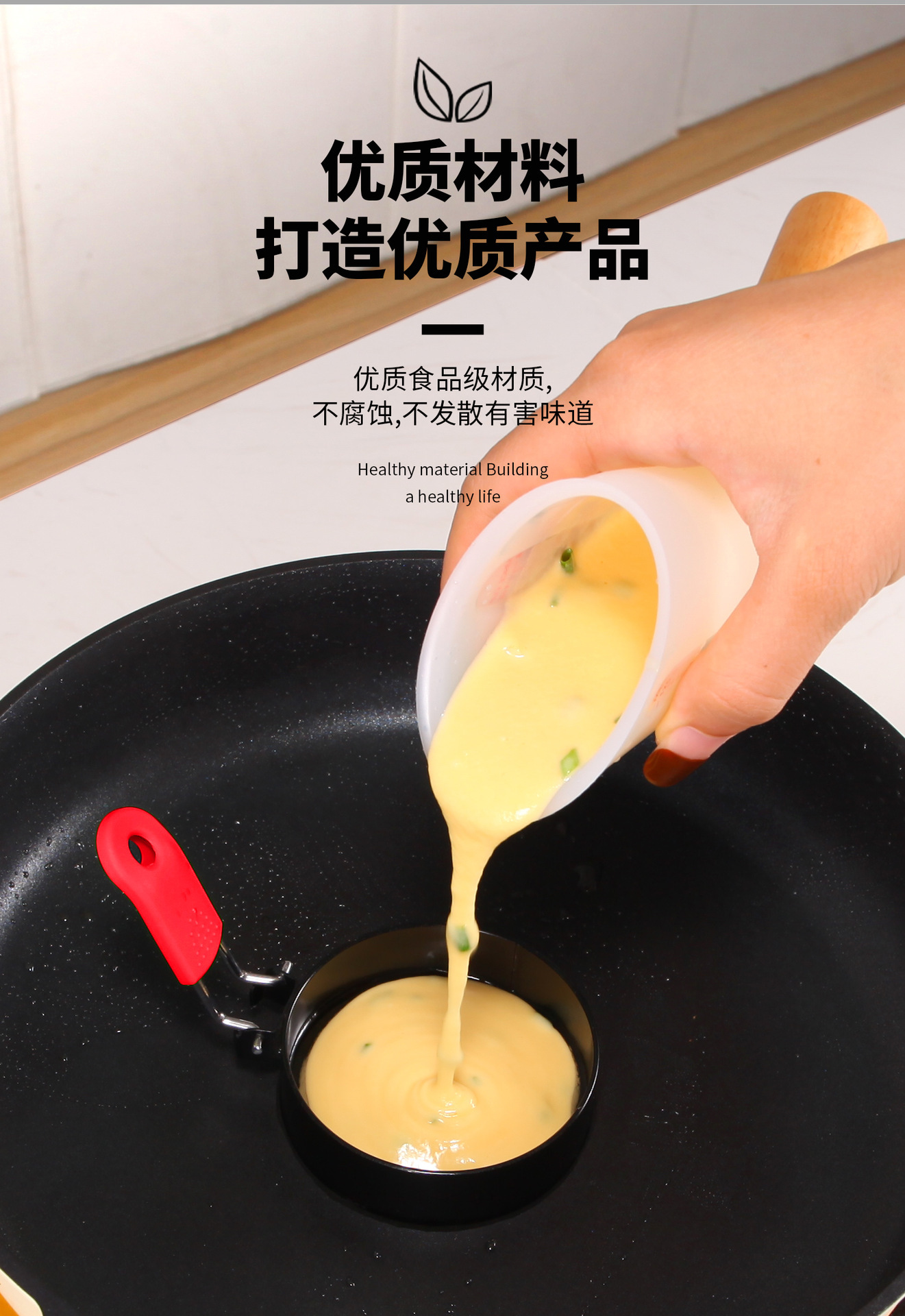 Пропитанная черная ручка круглый антипригарный омлет; Круглый антипригарный силиконовый набор для омлета; Круглый антипригарный омлет стальная ручка