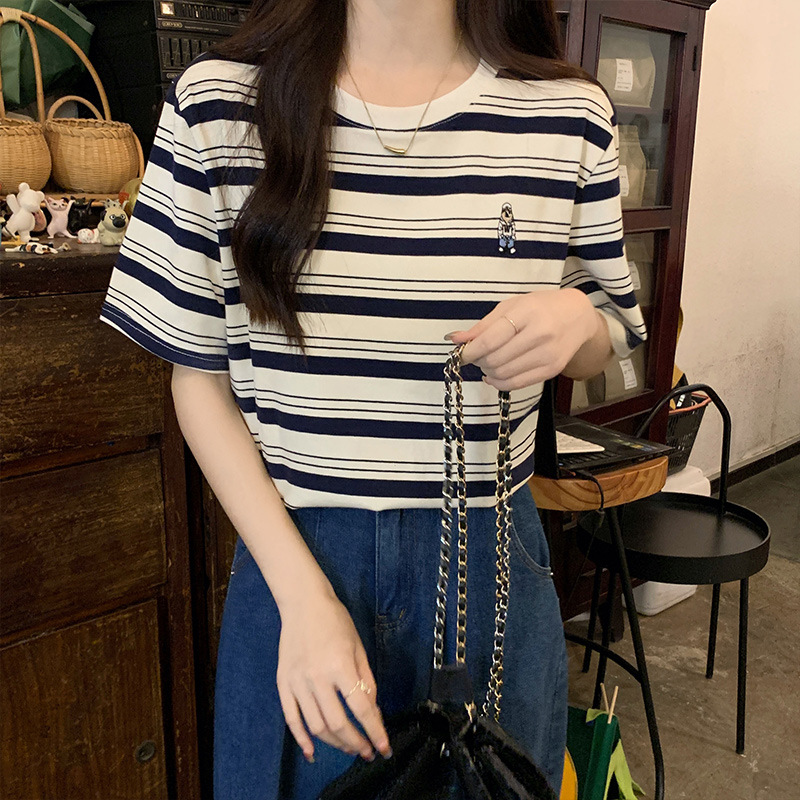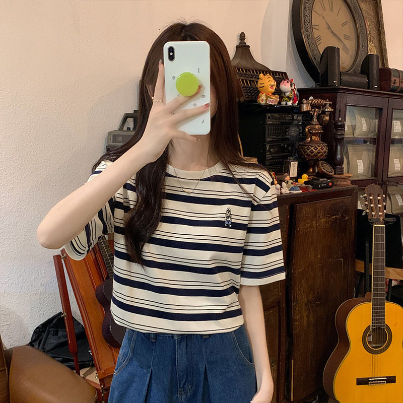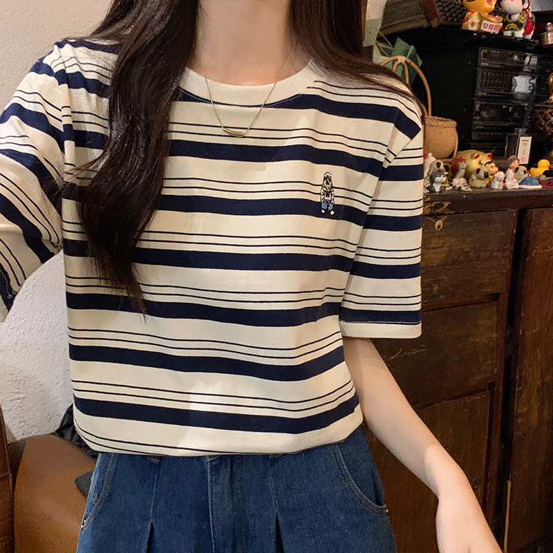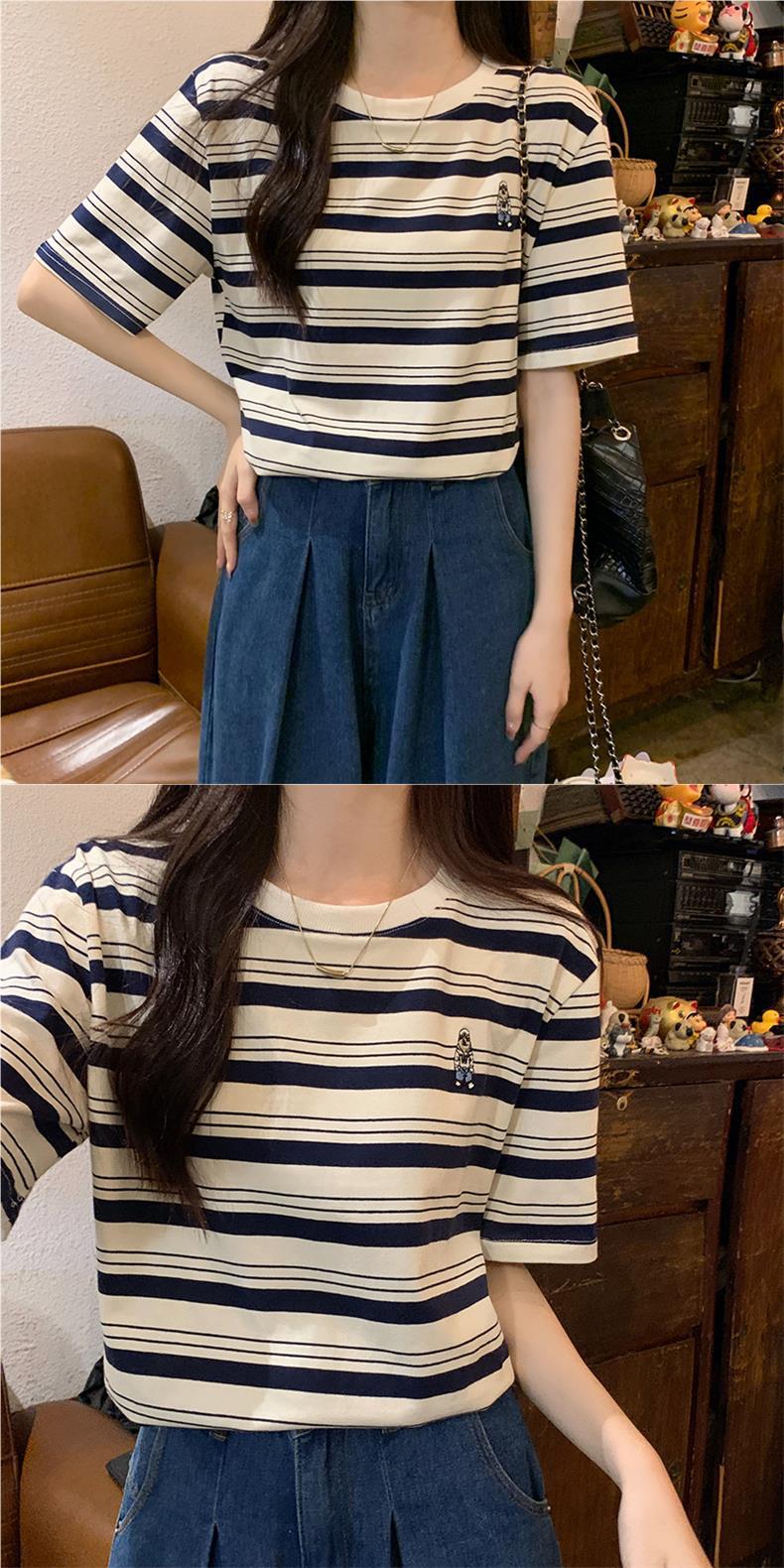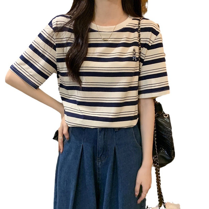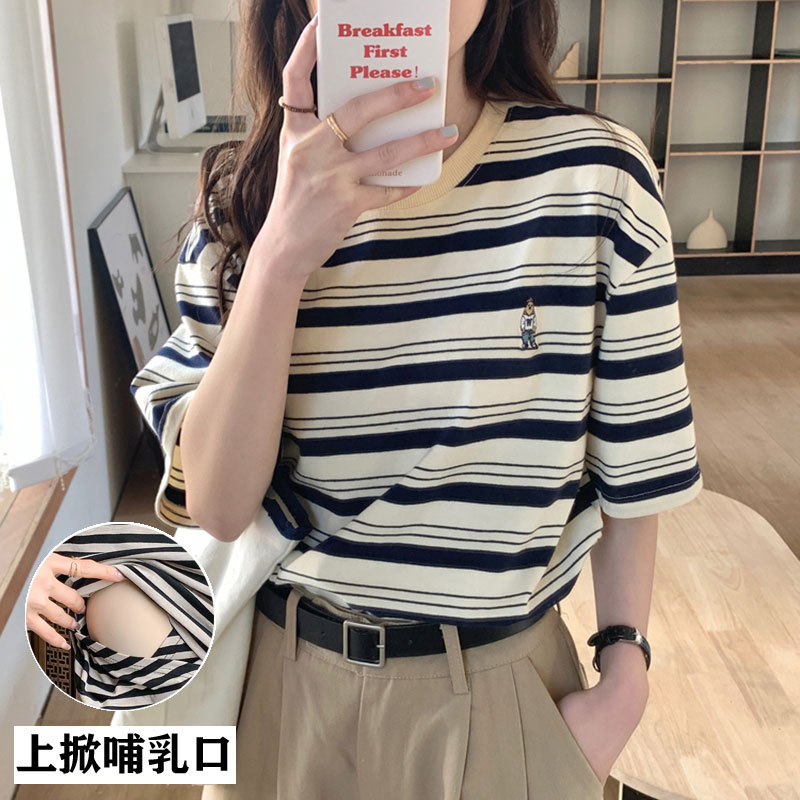 2024 кормящие хлопчатобумажная летняя футболка с короткими рукавами и круглым вырезом послеродовая горячая мама свободная тонкая полосатая кормушка