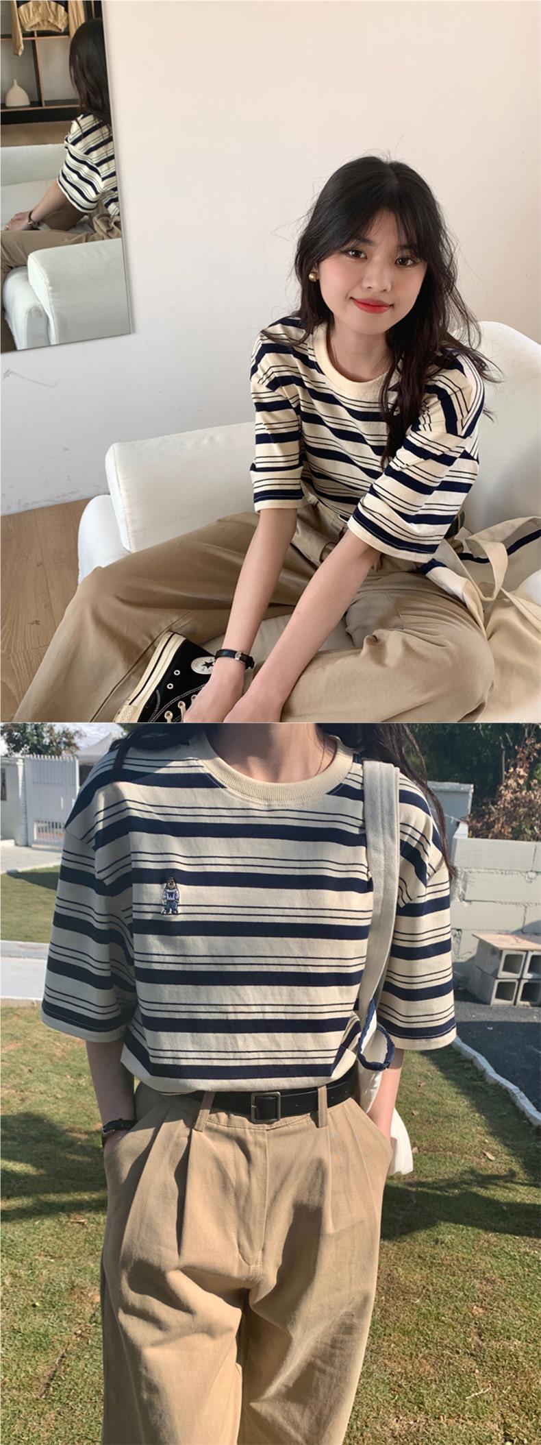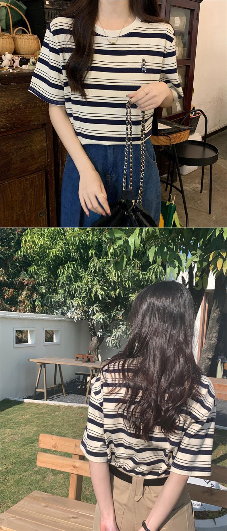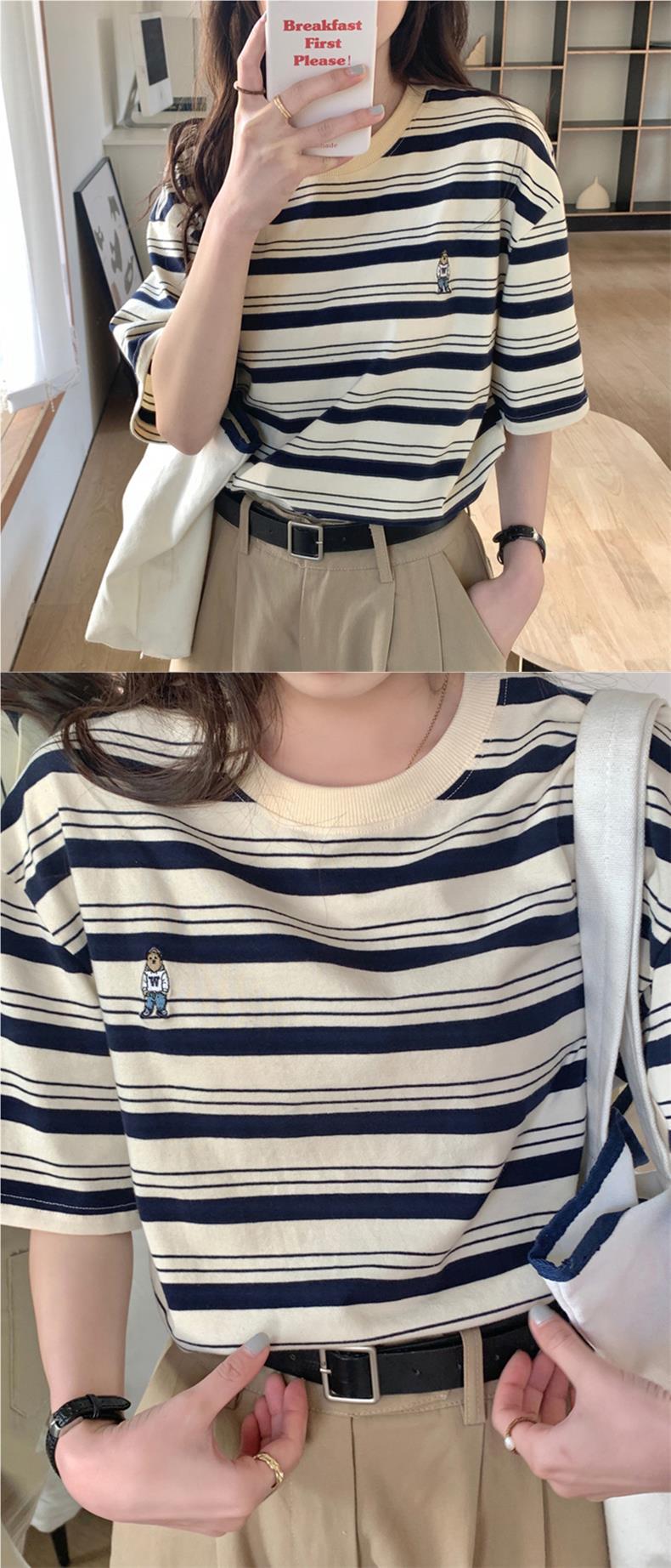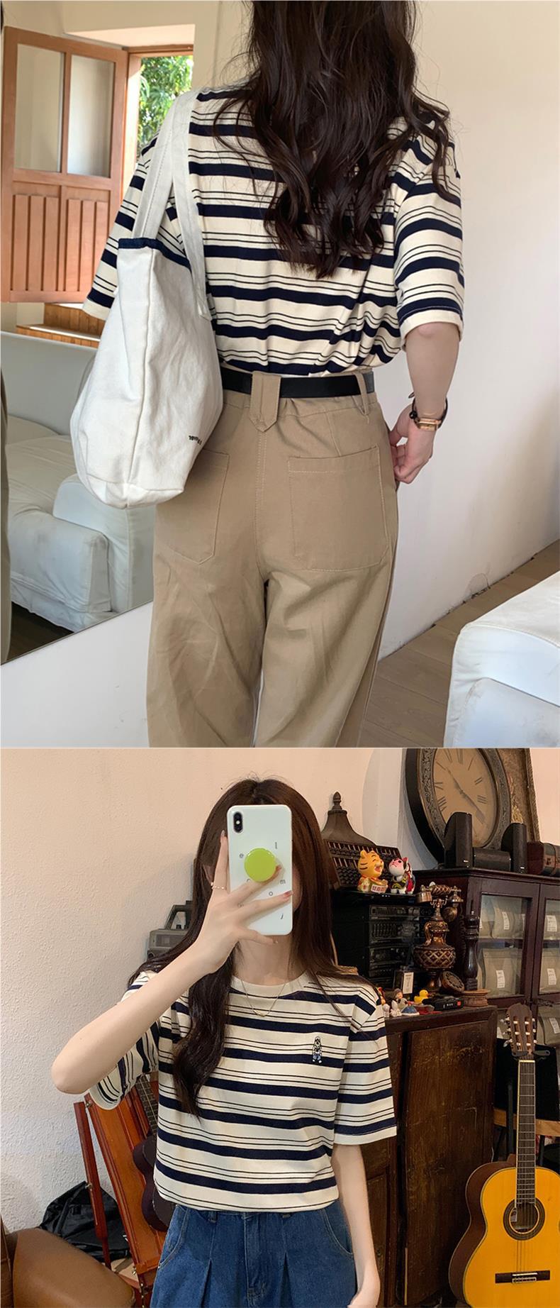 2024 кормящие хлопчатобумажная летняя футболка с короткими рукавами и круглым вырезом послеродовая горячая мама свободная тонкая полосатая кормушка