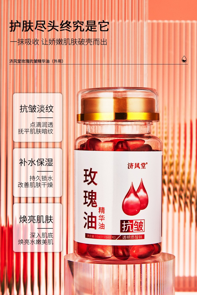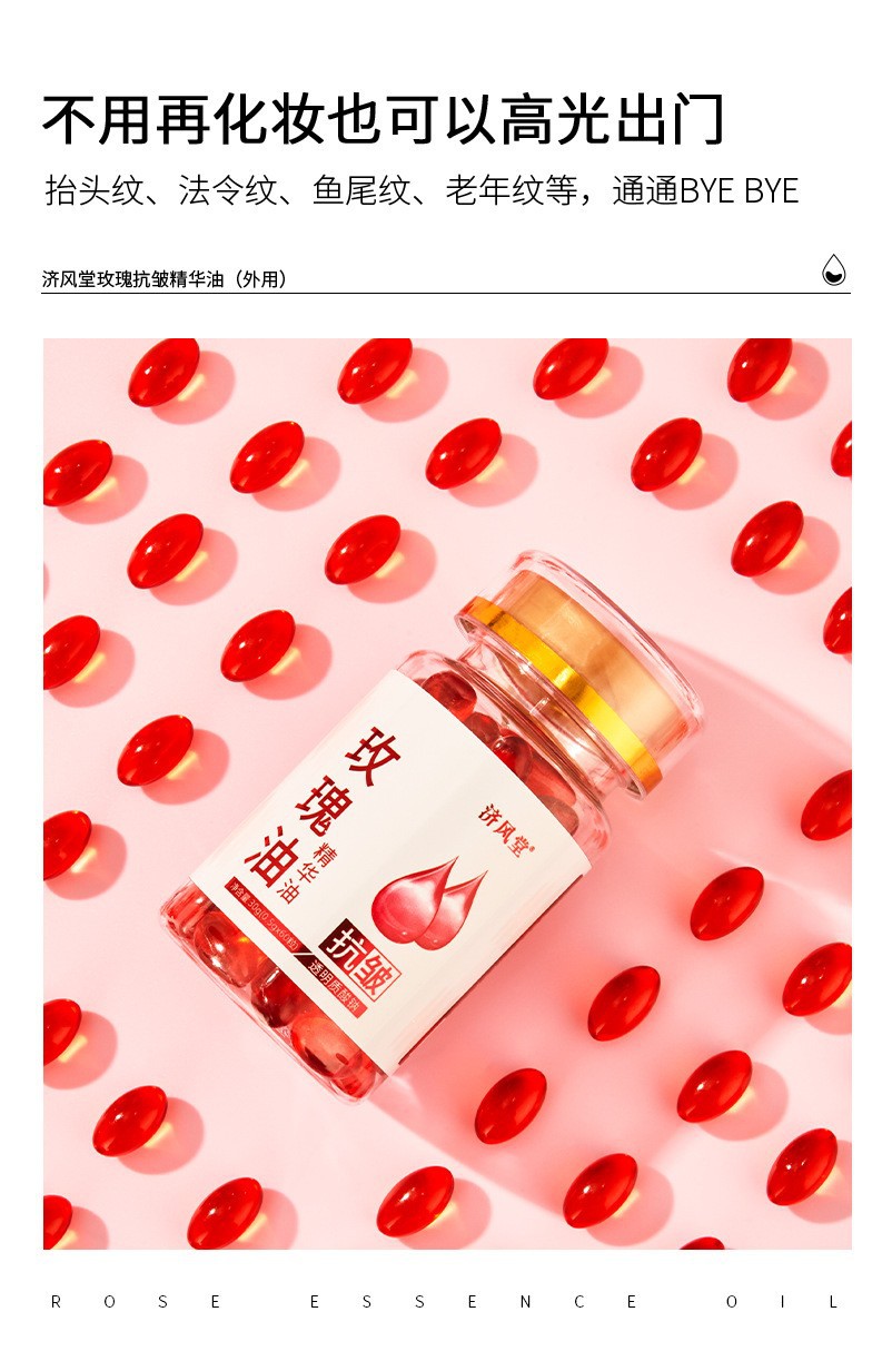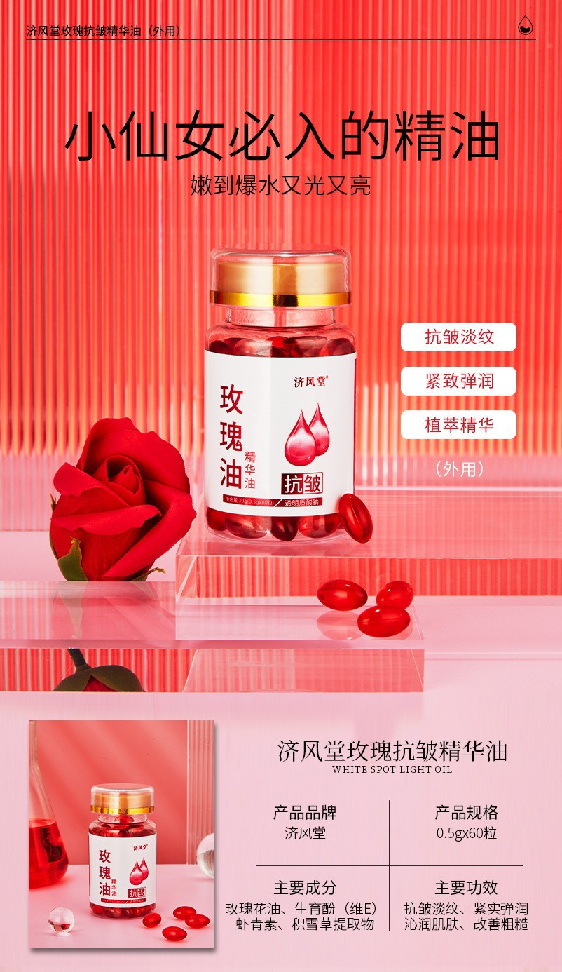 抖音快手直播济风堂玫瑰抗皱精华油胶囊次抛美容院面部护肤玫瑰油