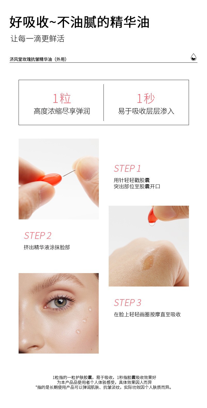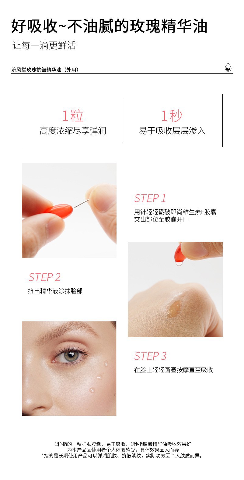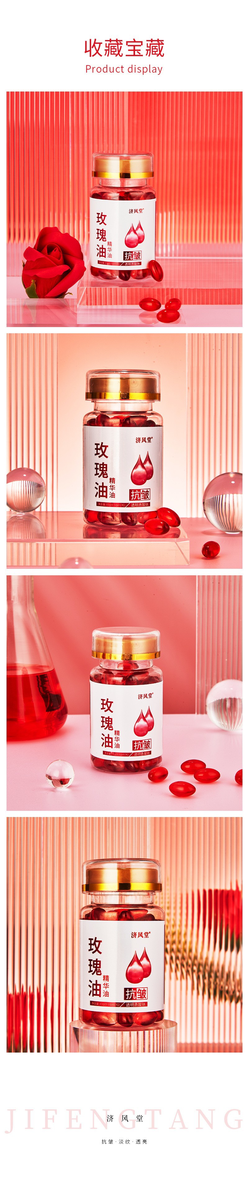 抖音快手直播济风堂玫瑰抗皱精华油胶囊次抛美容院面部护肤玫瑰油