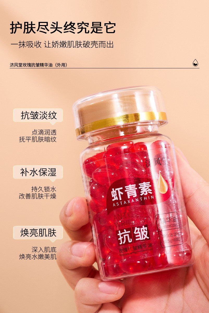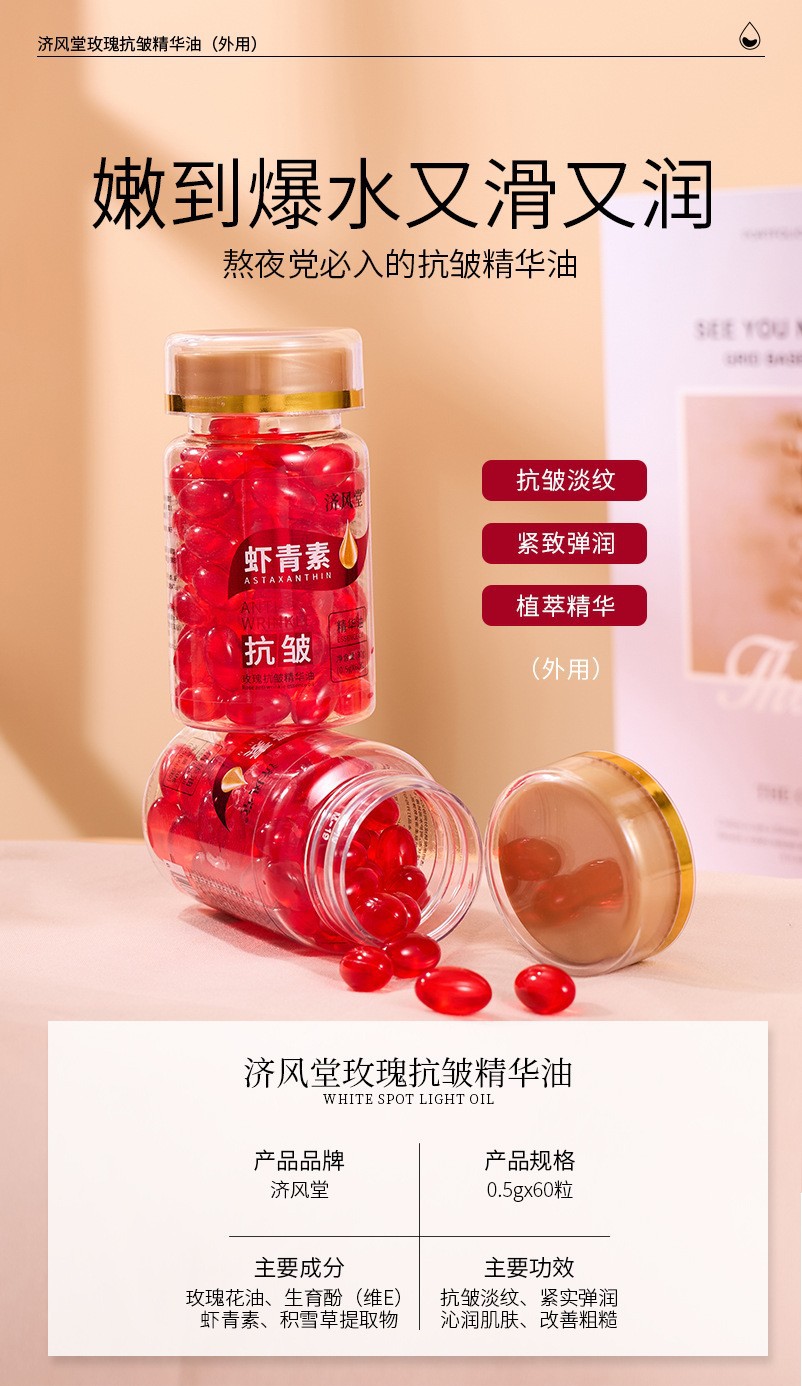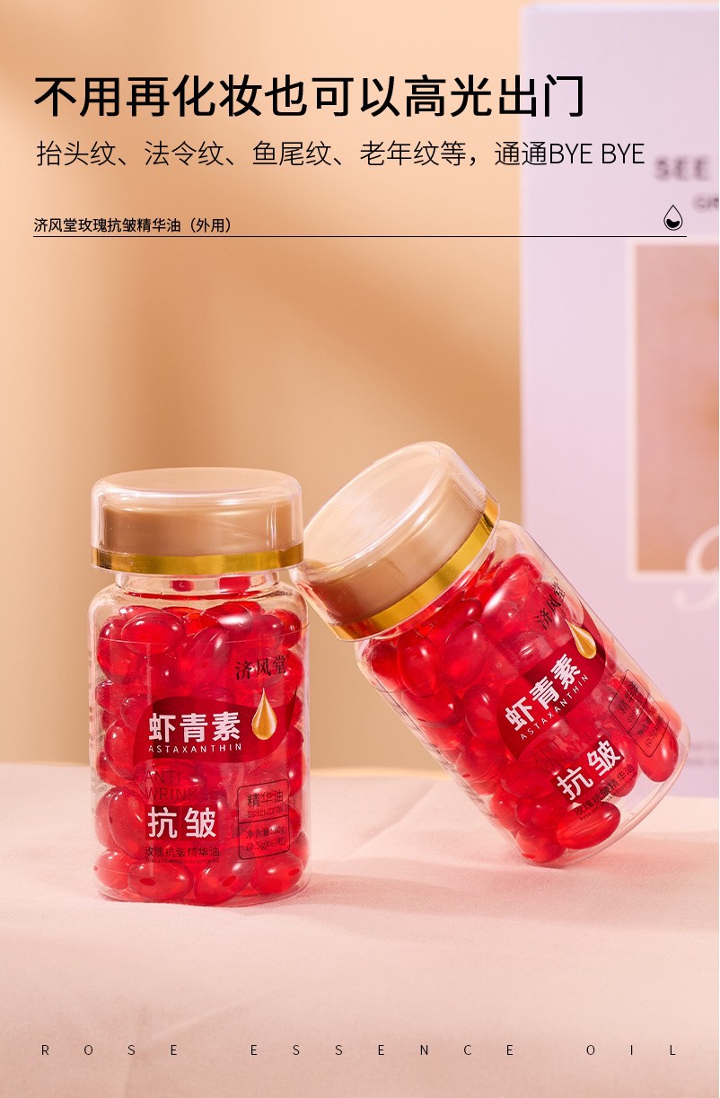Нефть Ji Fengtang Rose против морщин 60 капсул; Ji Fengtang (астаксантин) Розовое масло против морщин 60 капсул