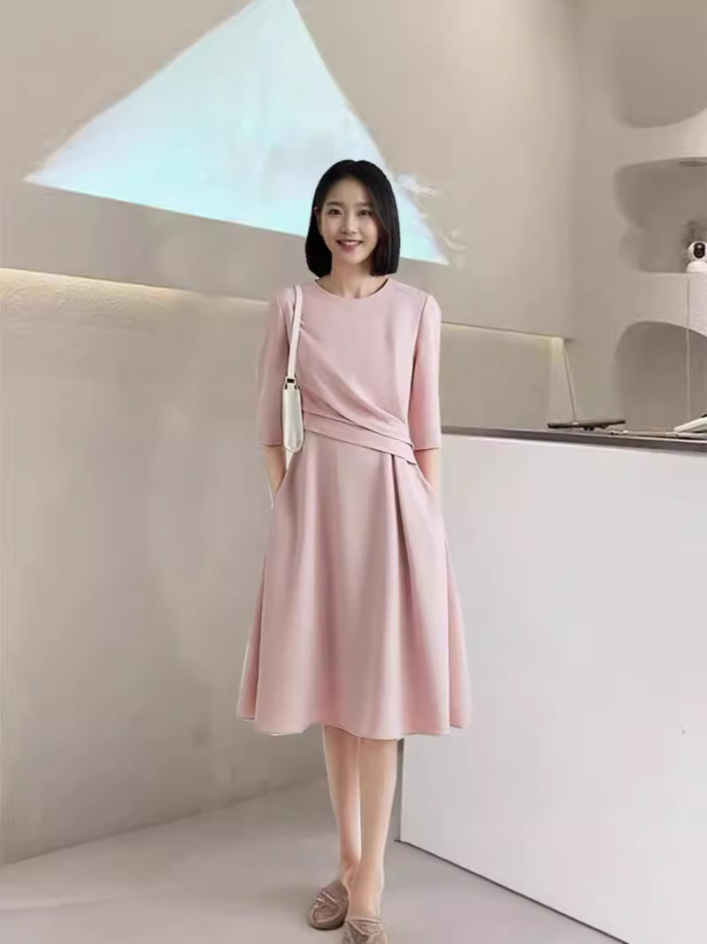 2691 большой размер женская французская лодка воротник на талии плиссированное красное платье жирный мм минималистская модная юбка средней и длинной