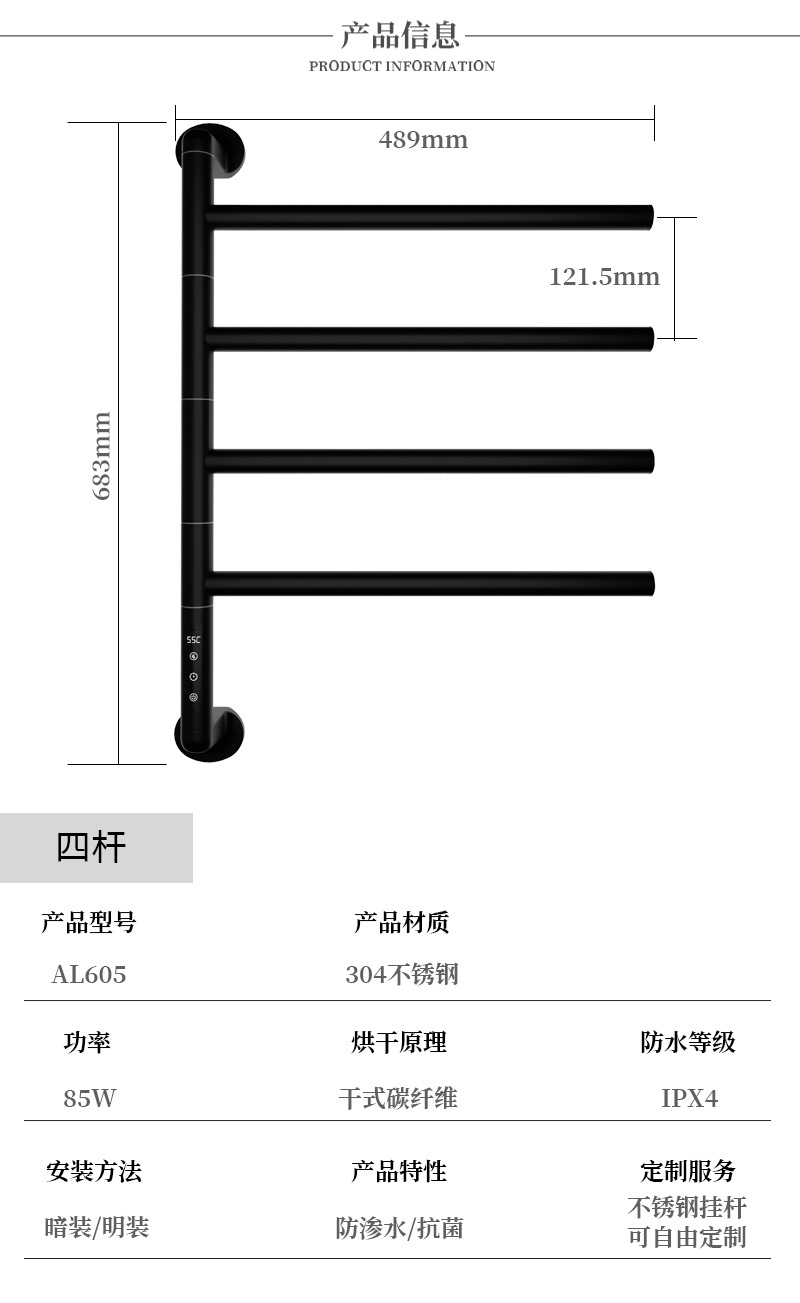 Интеллектуальная электрическая вращающаяся сушилка для полотенец из углеродного волокна, скрытая встраиваемая сушилка для ванной из нержавеющей стали, стеллаж для хранения банных полотенец