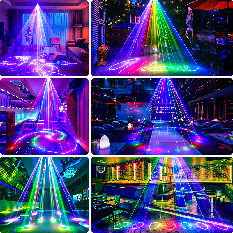 Новинка 2025 года: полноцветный анимированный лазерный свет для караоке-баров, красочный вращающийся световой луч с эффектом вспышек, рождественская проекция, DMX-управление, сценический свет