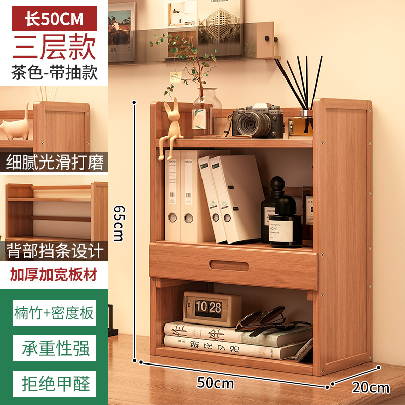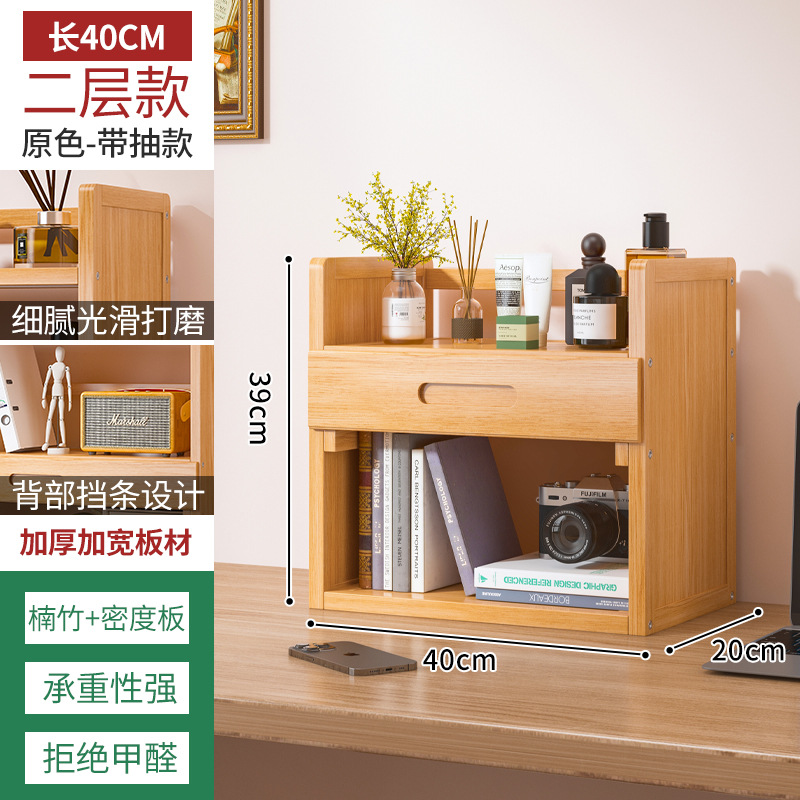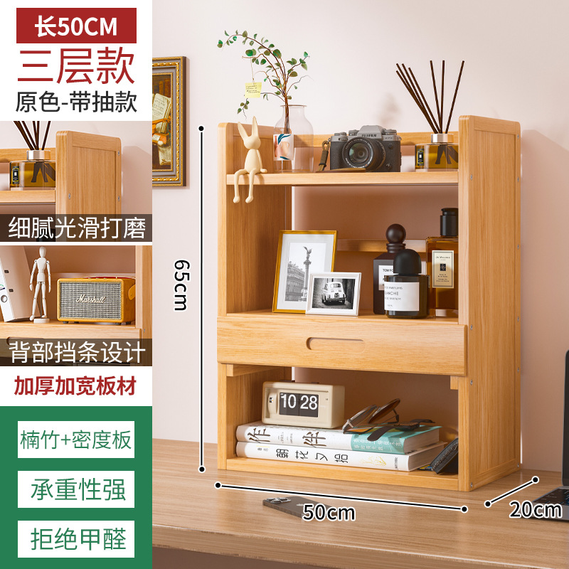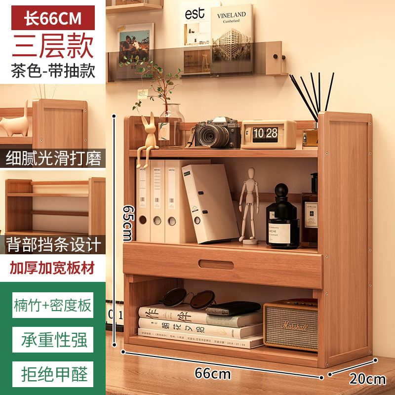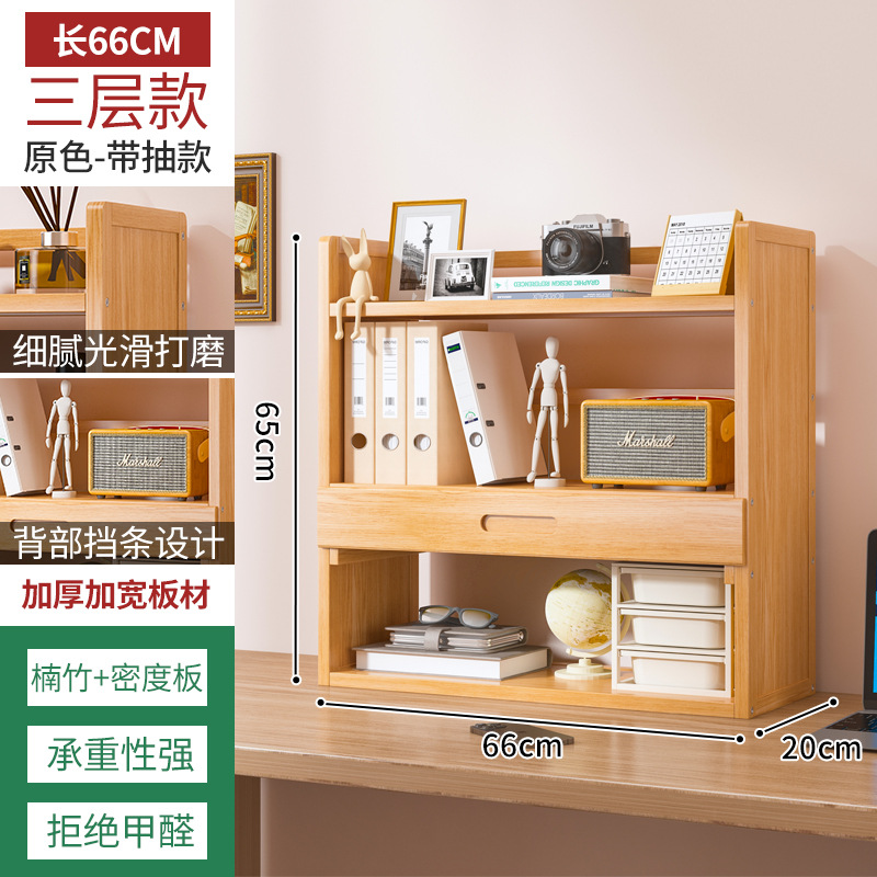 Простая настольная книжная полка для общежития, многоярусная стойка для хранения, домашний органайзер для рабочего стола студента с выдвижным ящиком и полками для хранения.