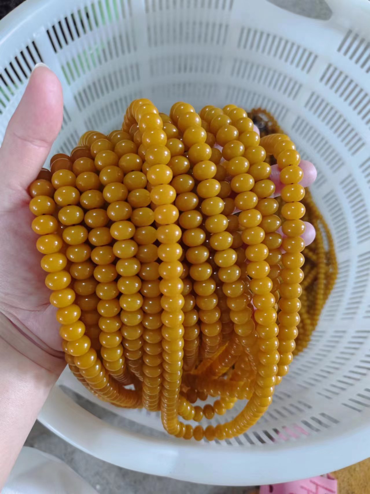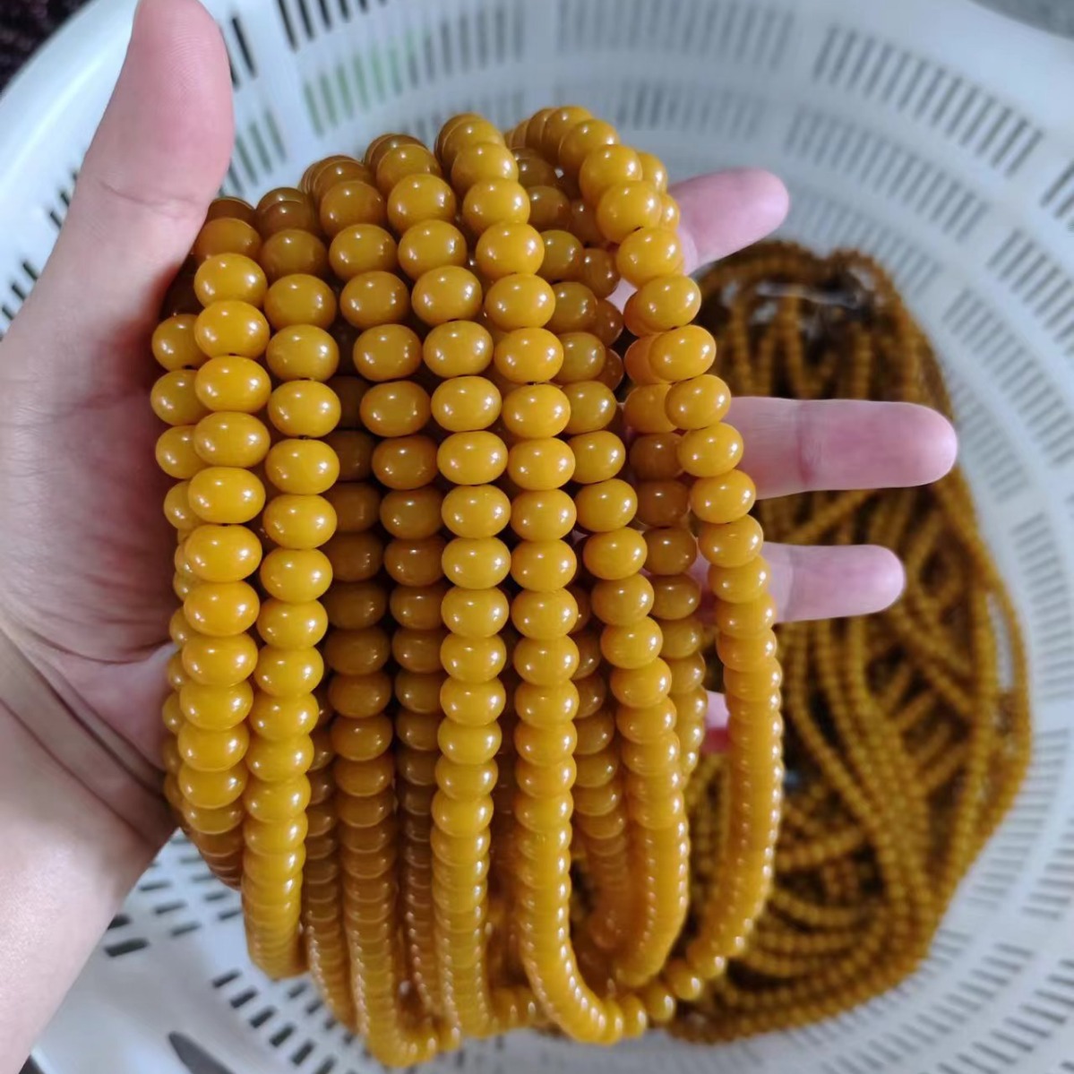 Производитель оптом 114 пчелиного воска желтый бодхичитский браслет медовый воск желтый абака бусы четки 8*11 мм