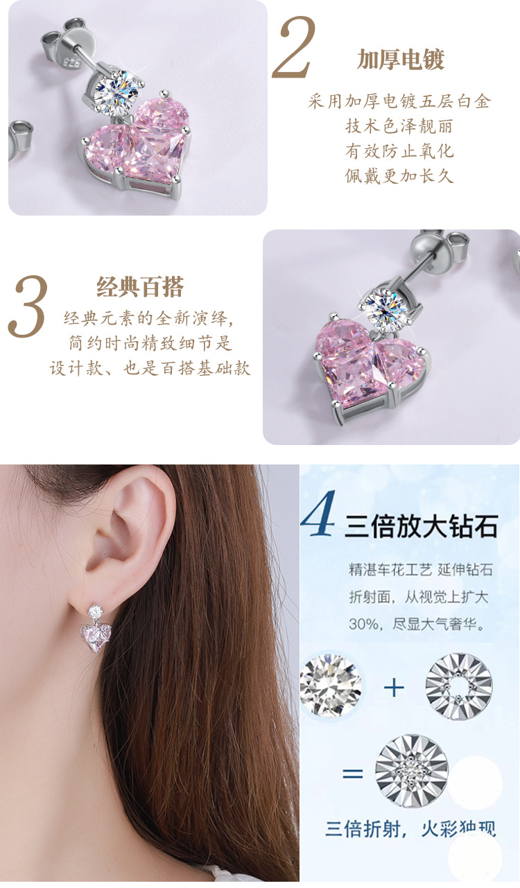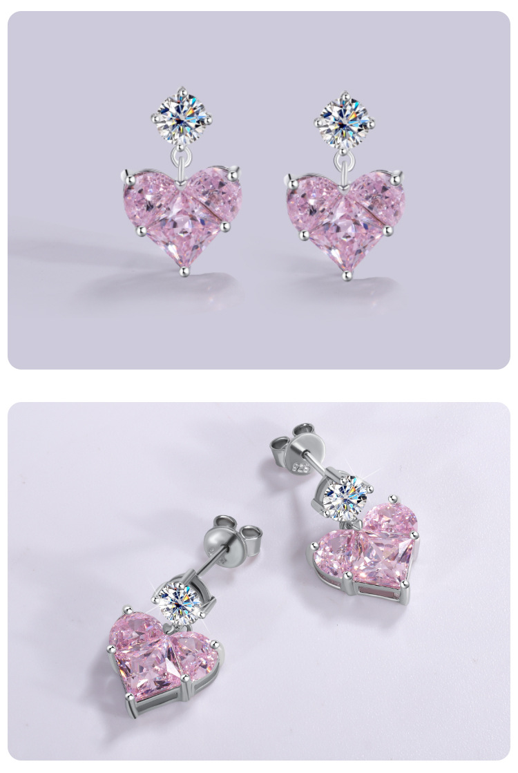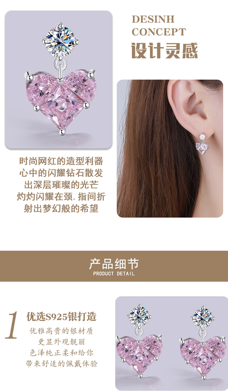 S925 стерлингового серебра серьги женские инкрустированные Мосанг бриллианты в форме сердца серьги любовь серии дизайн взрывных подарков на День Святого Валентина оптом