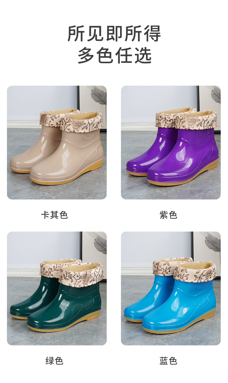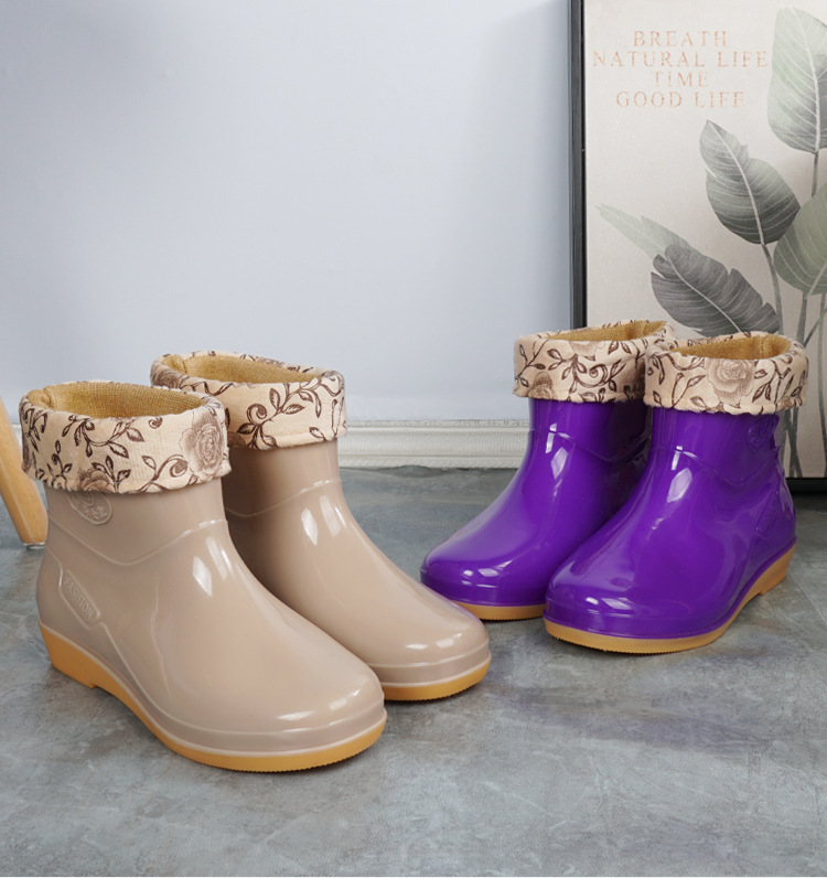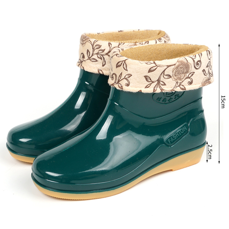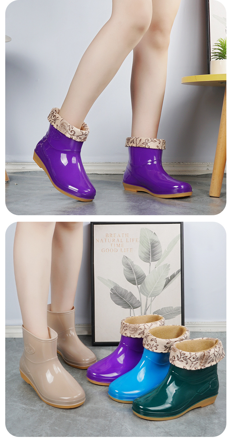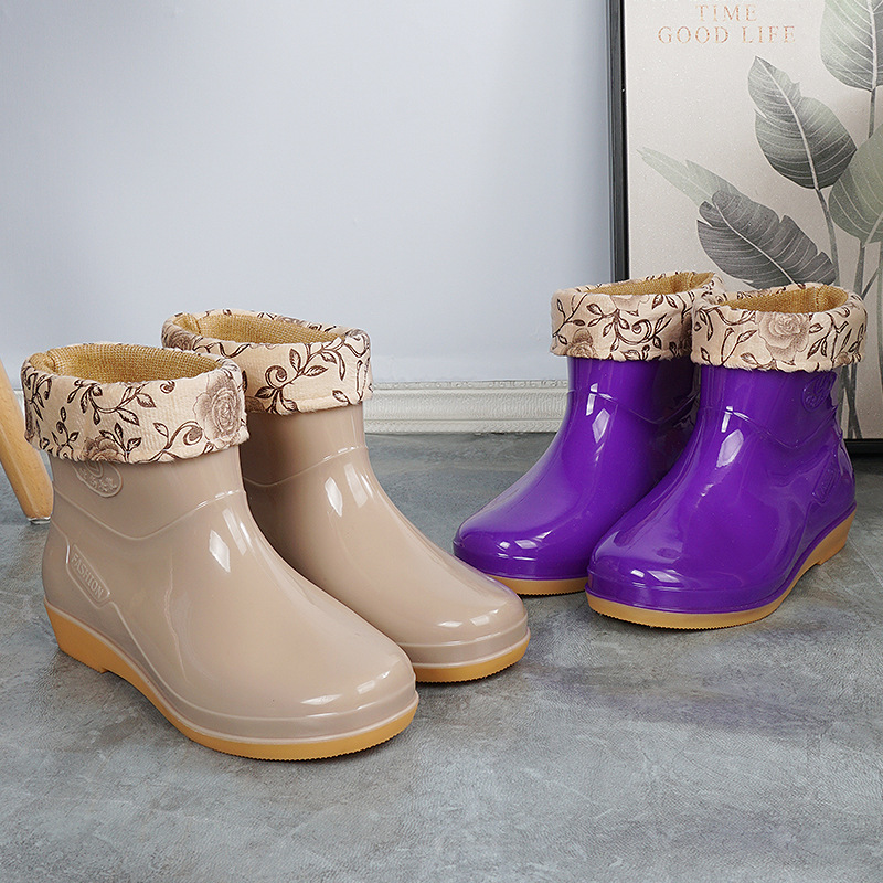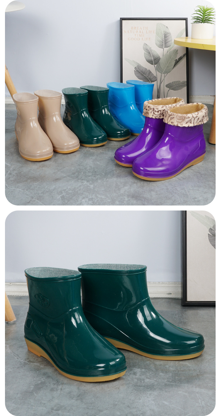 Дождевые сапоги женская короткая трубка весной и осенью повседневная корейская версия хлопка теплая съемная машина для мытья кухни толстая подошва и мелкий рот низкий ботинки для женщин