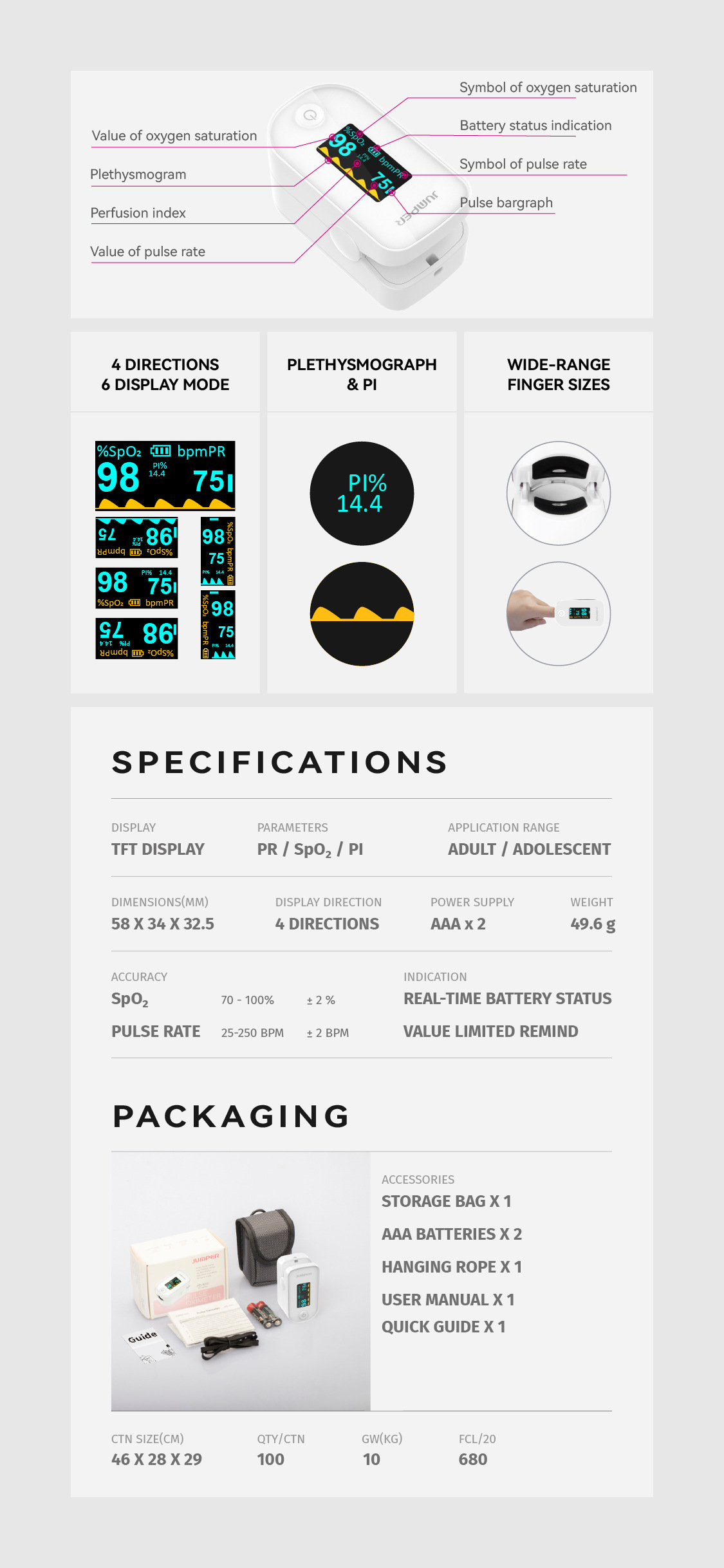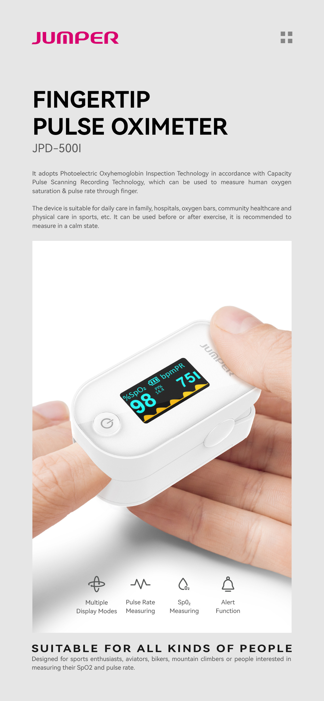 JUMPER 500I экспортный экспортный английский пульсоксиметр с зажимом для пальцев