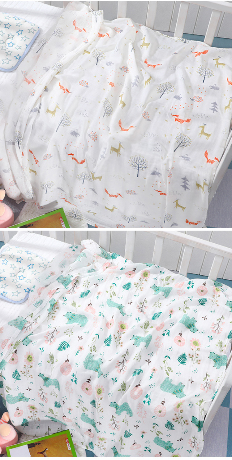 [Обработка и настройка] марлевое бамбуковое хлопковое пеленальное полотенце для новорожденных, летнее двухслойное марлевое детское банное полотенце с принтом