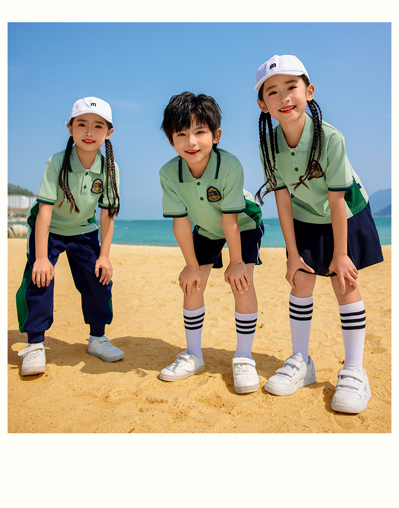 Зеленые шорты с коротким рукавом из двух частей; Зеленая юбка с короткими рукавами из двух частей; Зеленые брюки с длинными рукавами из двух частей; Зеленые брюки с длинными рукавами