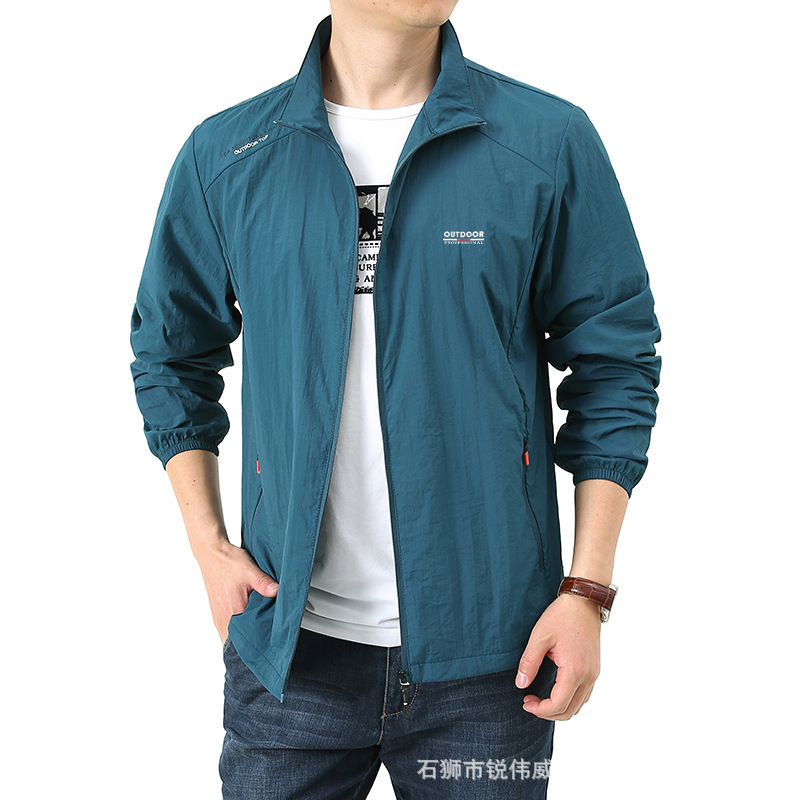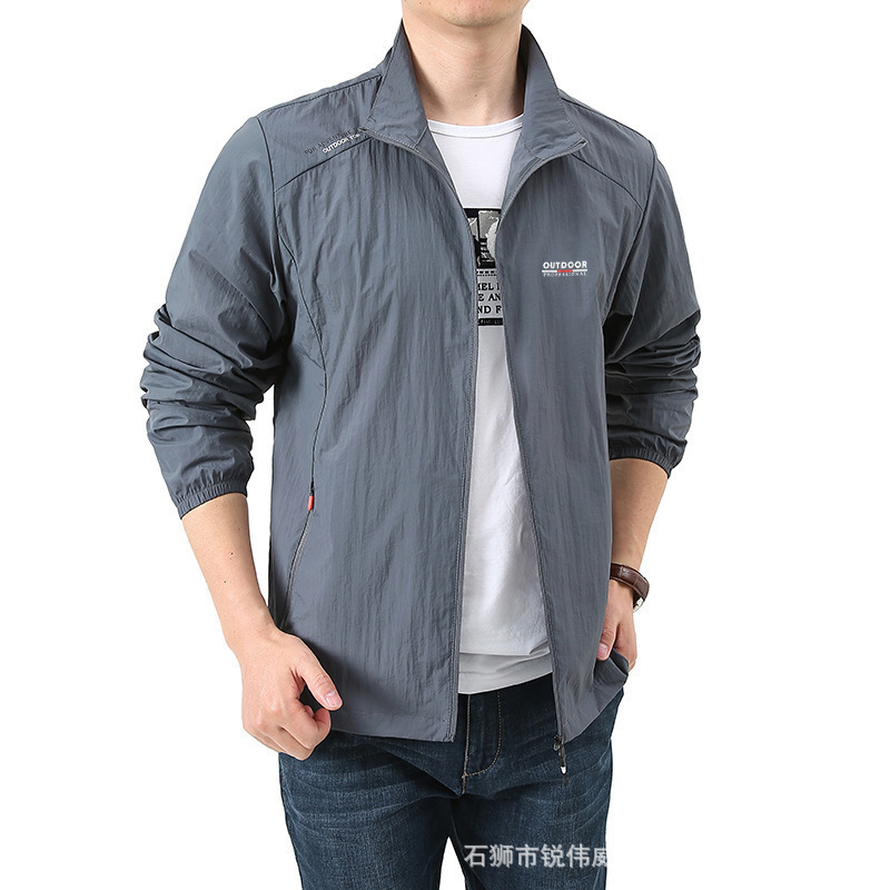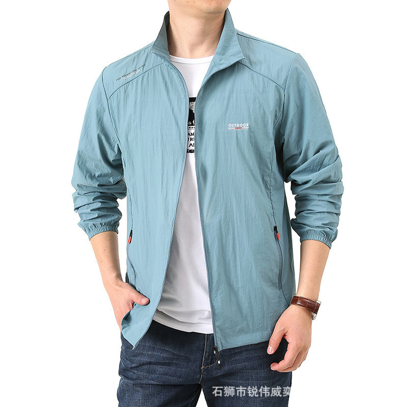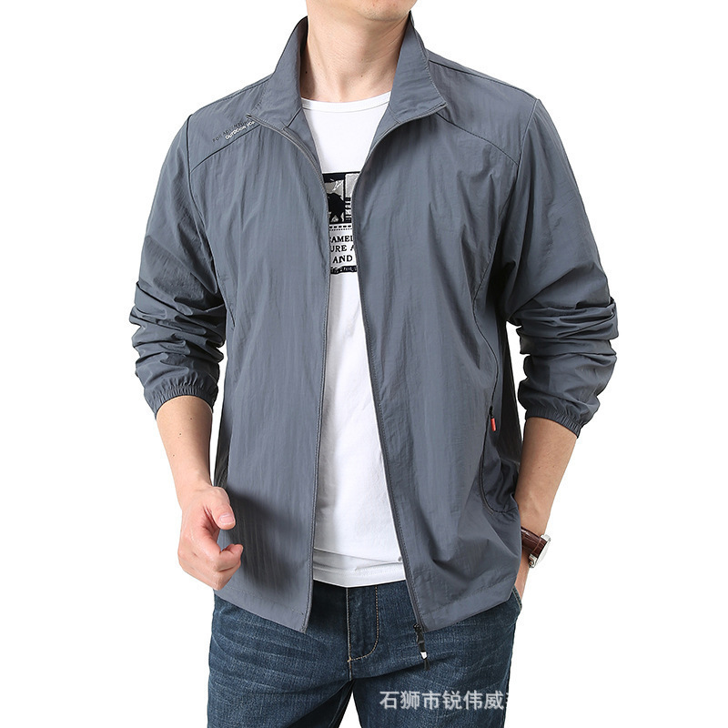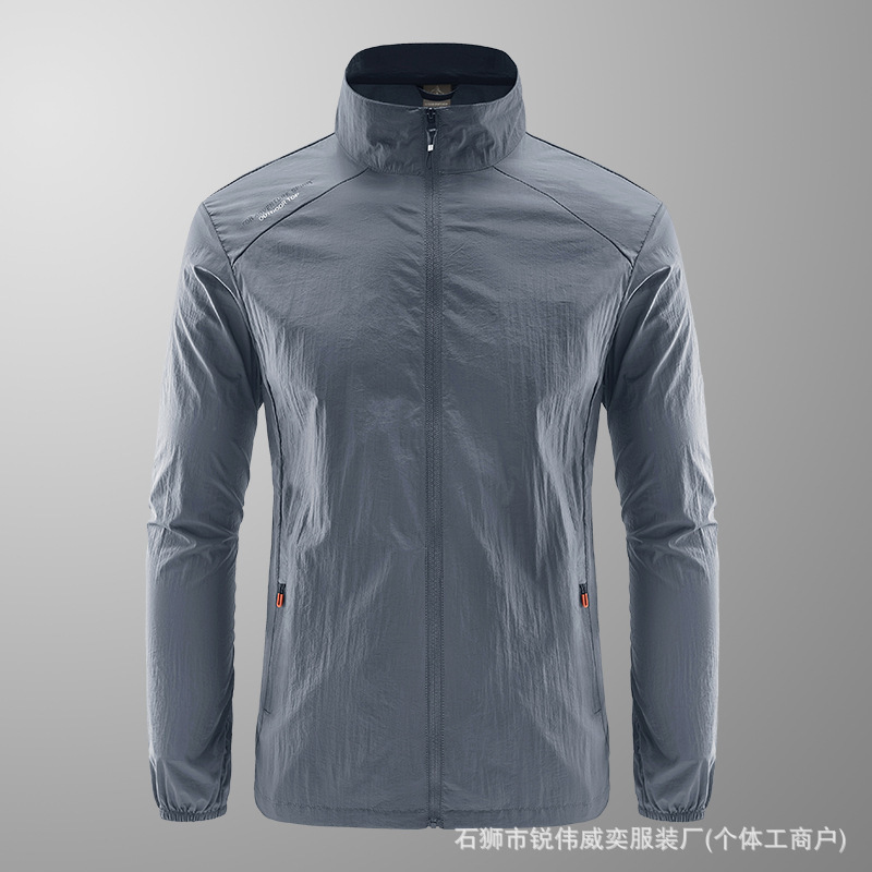 [2218] Мужская ледяная шелковая быстрая сушка солнцезащитный крем Мужская летняя стойка с воротником
