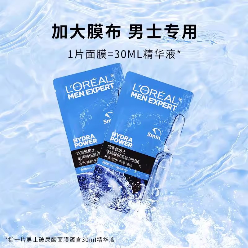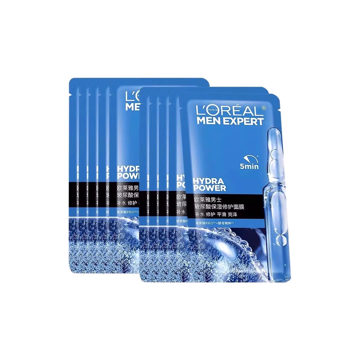 Мужская маска для лица L'Oreal с гиалуроновой кислотой, увлажняющая, восстанавливающая, контролирующая жирность, освежающая, для ухода за кожей, набор патчей для мужчин