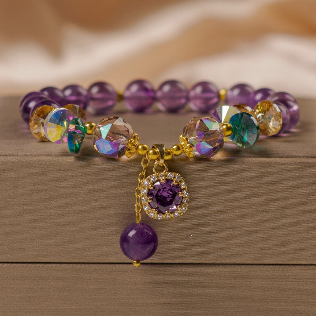 Фиолетовый браслет Lucky Bag (Бутик); Фиолетовый браслет с каплей воды (прекрасное изделие); Цветочный фиолетовый браслет (отличное качество); Аметист сердца (тонкий); Пиксиу Аметист (прекрасный продукт); Аметист-бабочка (тонкий); Фиолетовый браслет из четырехлистного клевера (тонкая продукция); Квадратный аметист (прекрасное качество); Золотой замок аметист (прекрасное изделие); Звездный аметист (тонкий); Браслет из тыквы фиолетового цвета (изысканное изделие)