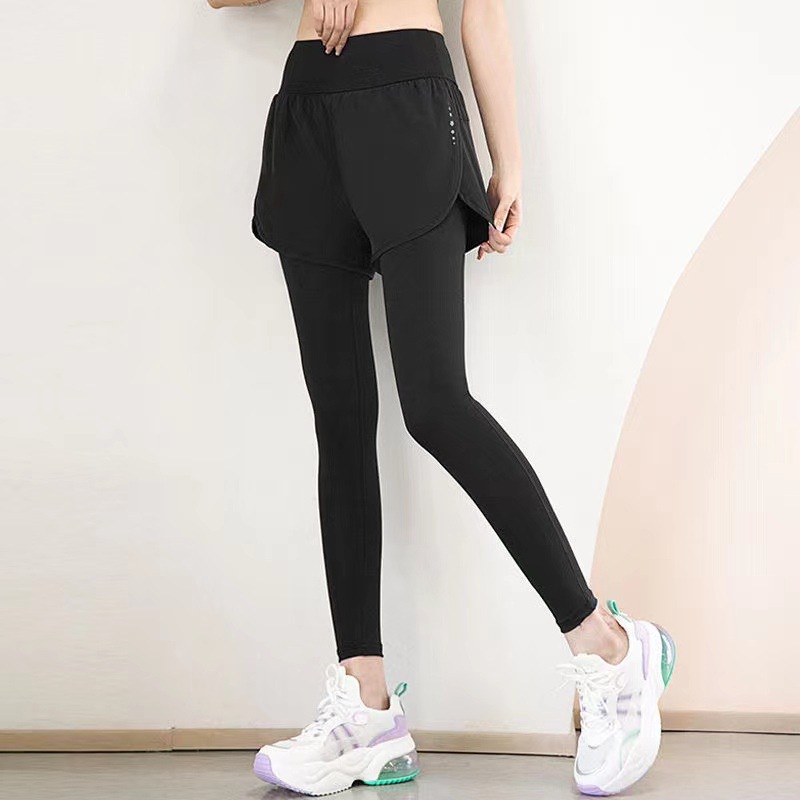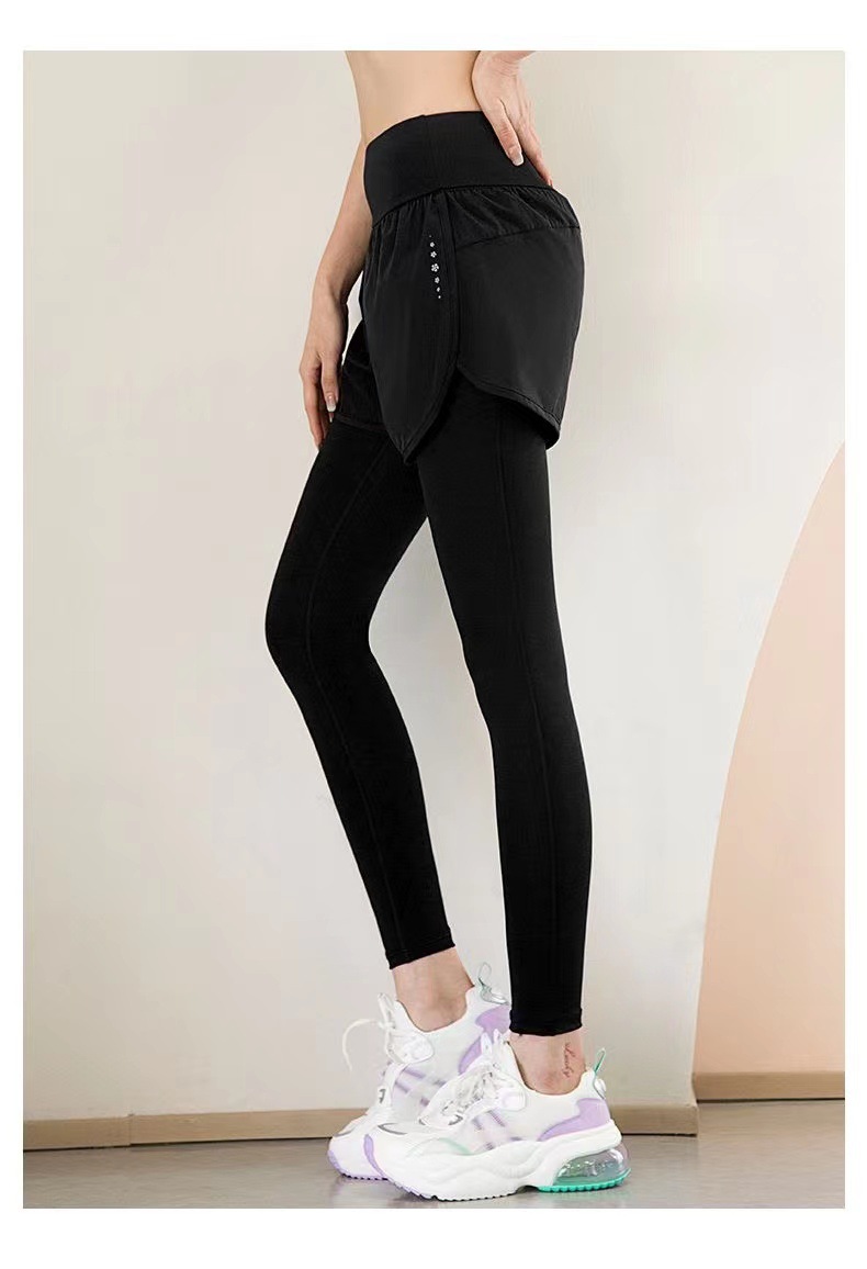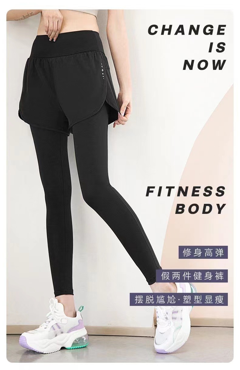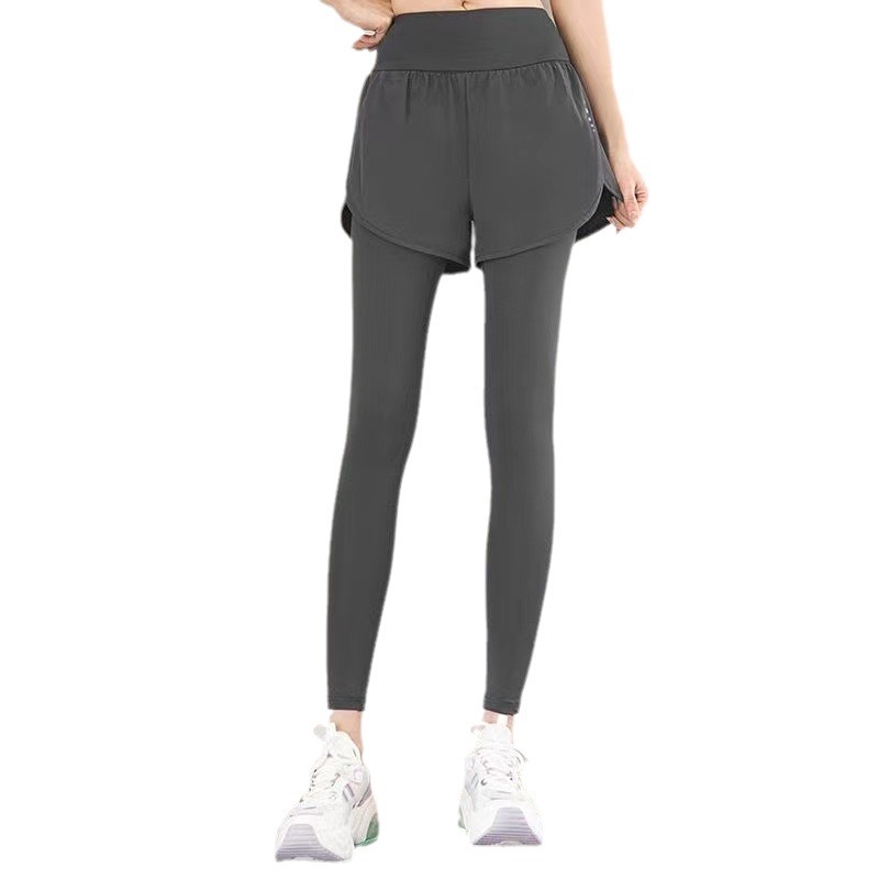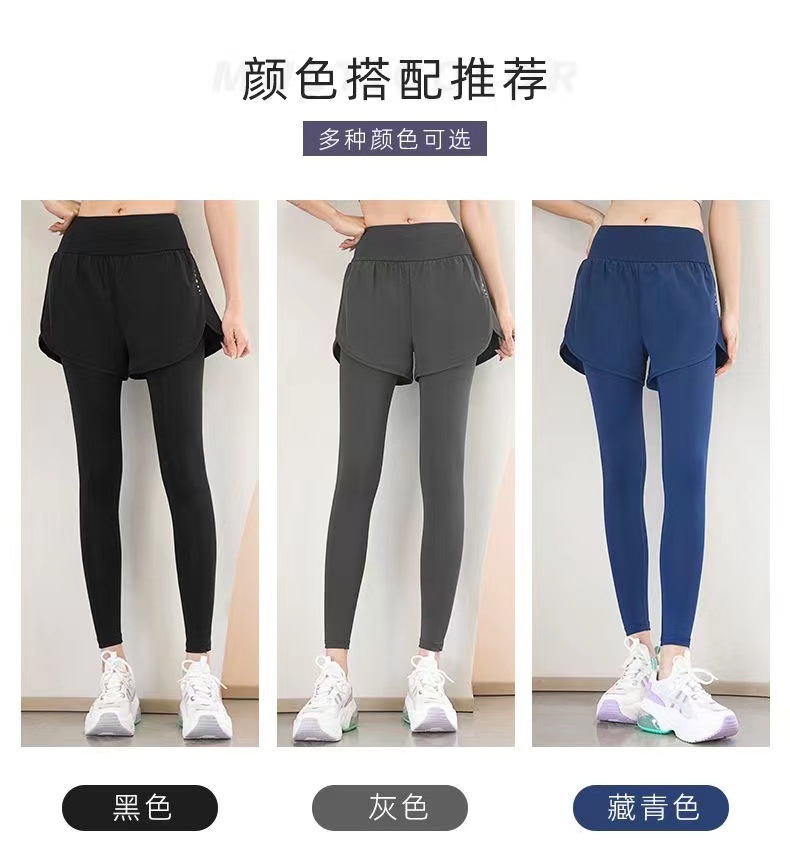 Весенние и осенние поддельные две спортивные штаны женские с высокой талией и ягодицами бег фитнес-штаны без следов голые штаны йоги бег