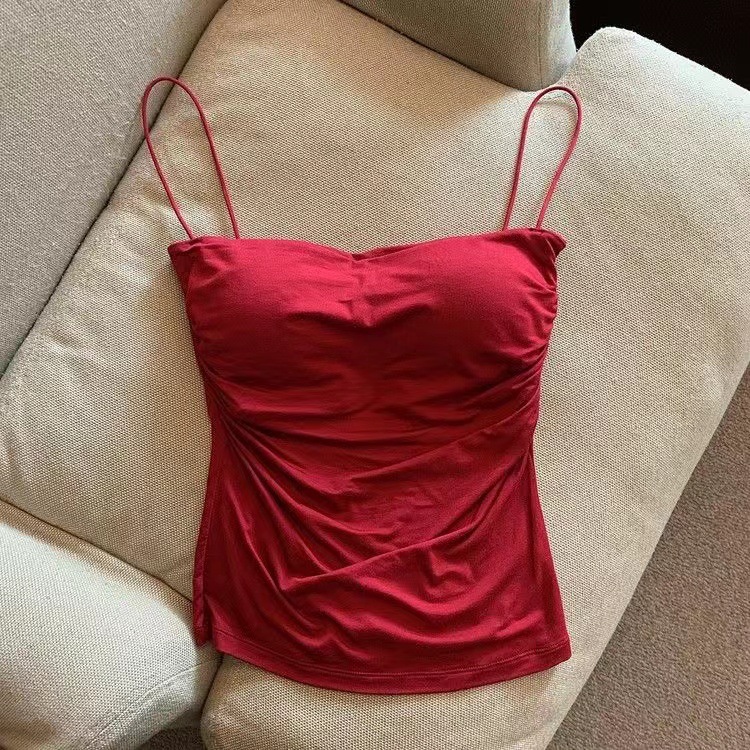 Горячая девушка чистая складка камзол жилет женская летняя тонкая бретелька сладкая пряная ветреная рубашка без рукавов