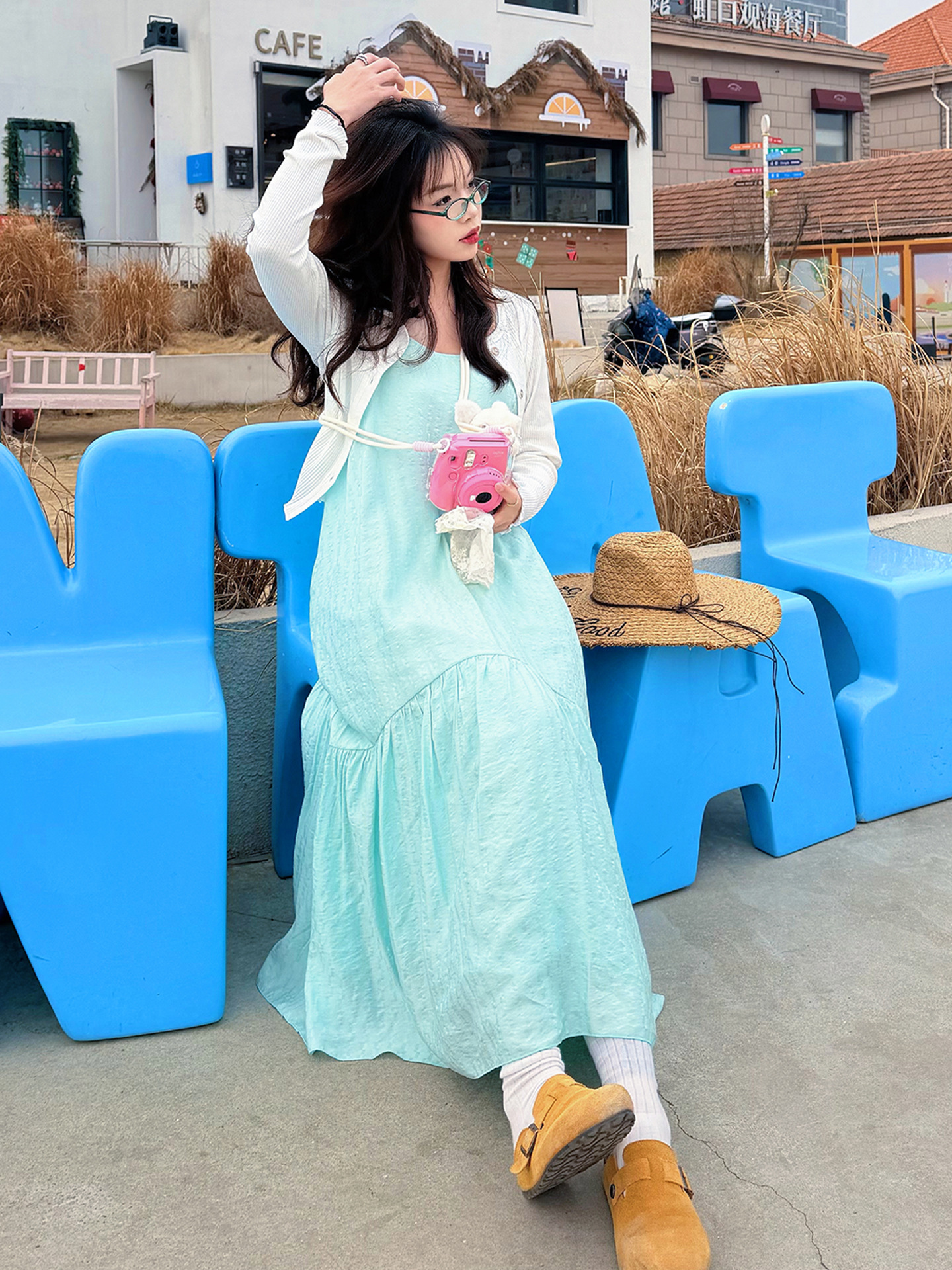 开衫不仅可以搭配吊带裙遮住肉肉,不闷热