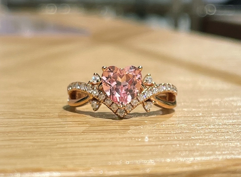 С925; К золото; Форма сердца - Сакура Розовый - Шампанское Золото - Гонконгский код 20