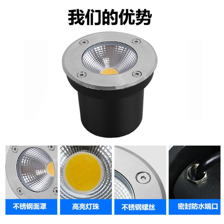 Подземный светильник COB круглый встраиваемый 3-7 Вт, диаметр поверхности 80-100 мм, для газона, квадратного коридора, сада, уличного освещения