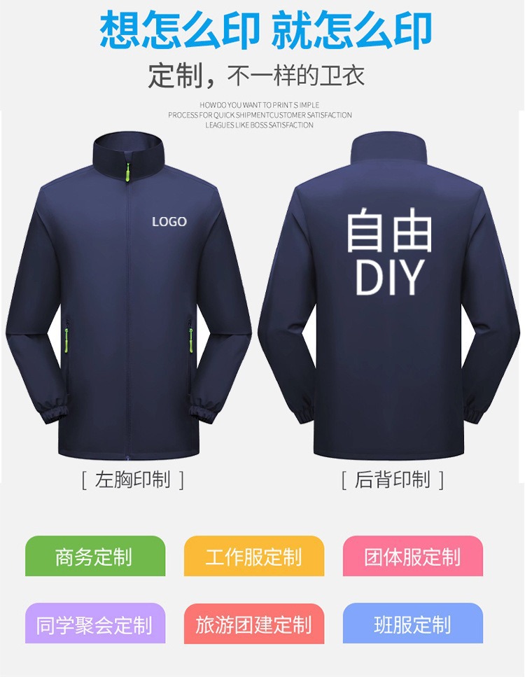 Тонкая ветровка с напечатанным логотипом, рабочая одежда с воротником-стойкой, ветрозащитная куртка, одежда для активного отдыха, групповая униформа, рабочая одежда