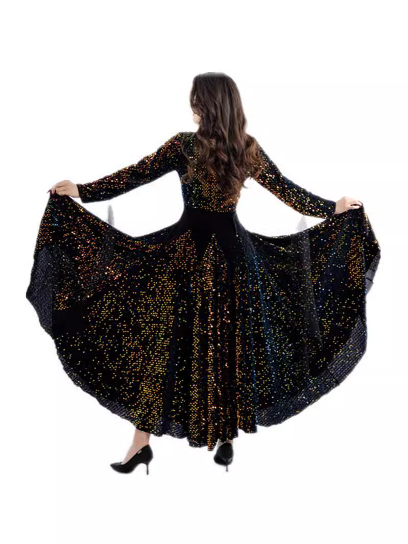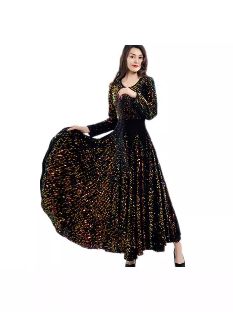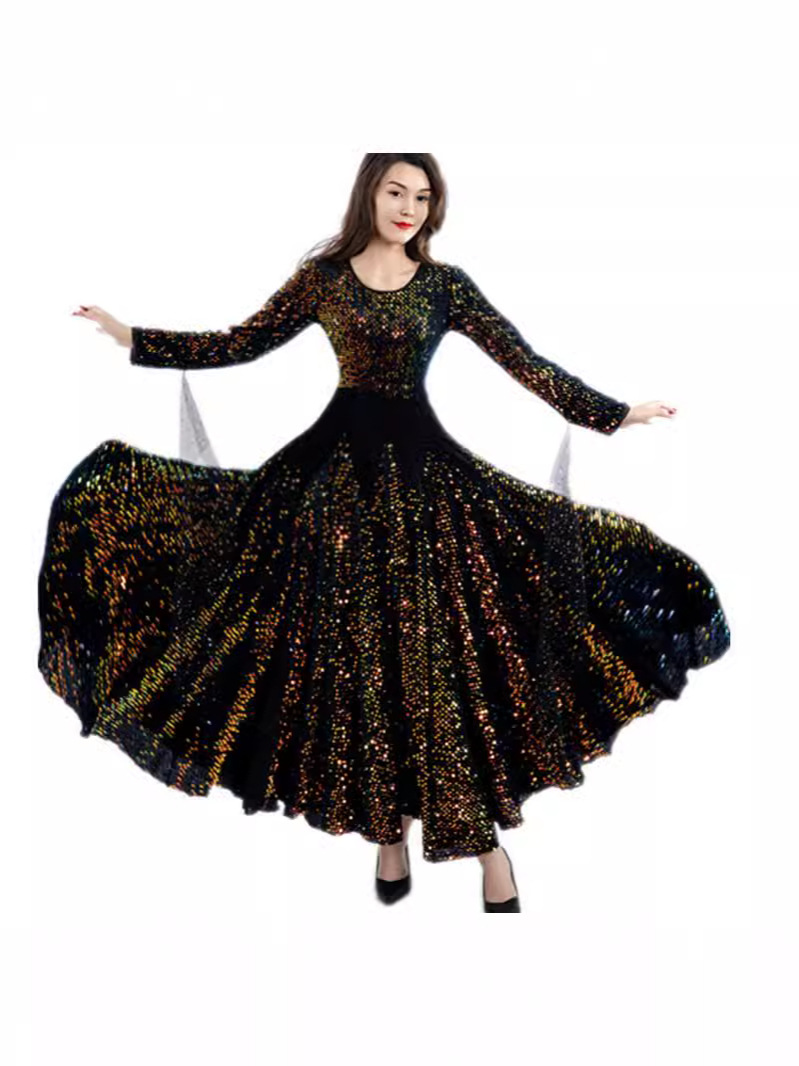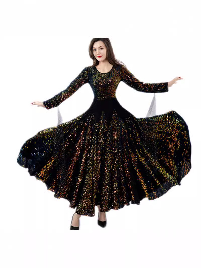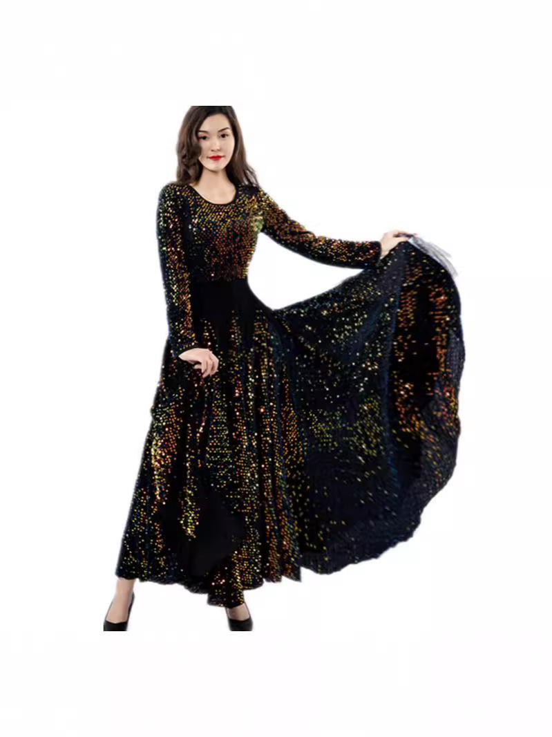 Новое платье с юбкой для современного танца, юбка с большим подолом, одежда для выступлений с длинными рукавами, одежда для выступлений в бальных танцах, современный танец